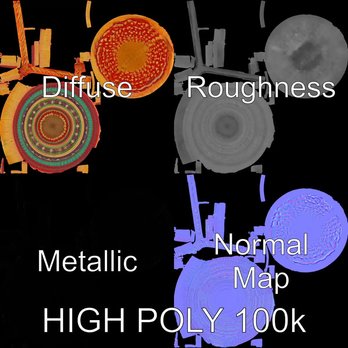 This model pack offers a detailed 3D representation of a colorful woven basket, ideal for games, interior scenes, and virtual marketplaces. Each basket model is crafted with three levels of detail: low-poly for mobile applications, middle-poly for environment setups, and high-poly for production rendering in software like 3ds Max, Maya, and Blender. The models feature PBR textures with 4096x4096 resolution, including Diffuse, NormalMap, and reflection/roughness/metallic maps, compatible with modern rendering engines. All models are meticulously unwrapped with no overlapping UVs, ensuring high-quality texture application.