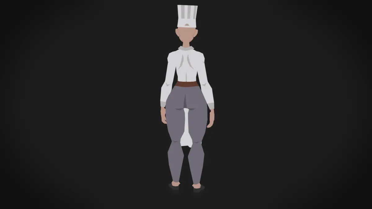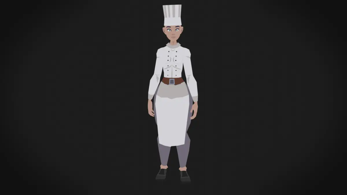 Low poly highly stylized chef girl character ready for game development.