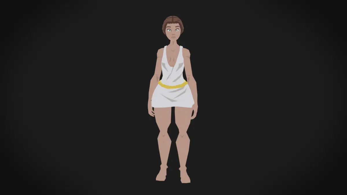 Low poly highly stylized philosopher girl character ready for game development.
