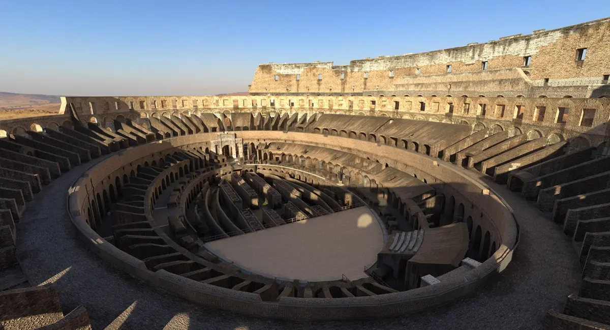 Colosseum gladiatorial amphitheater of ancient roman era ruin.