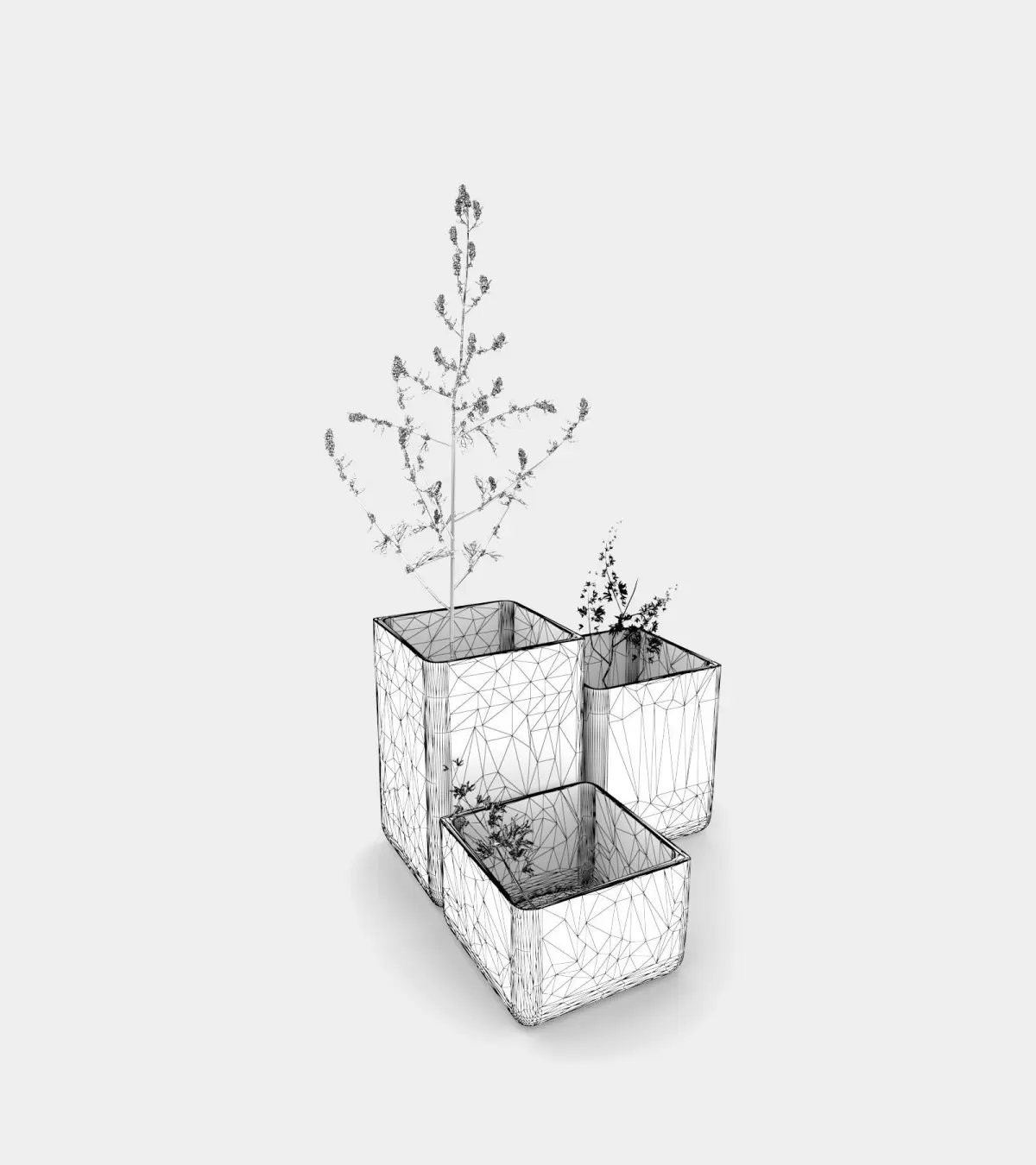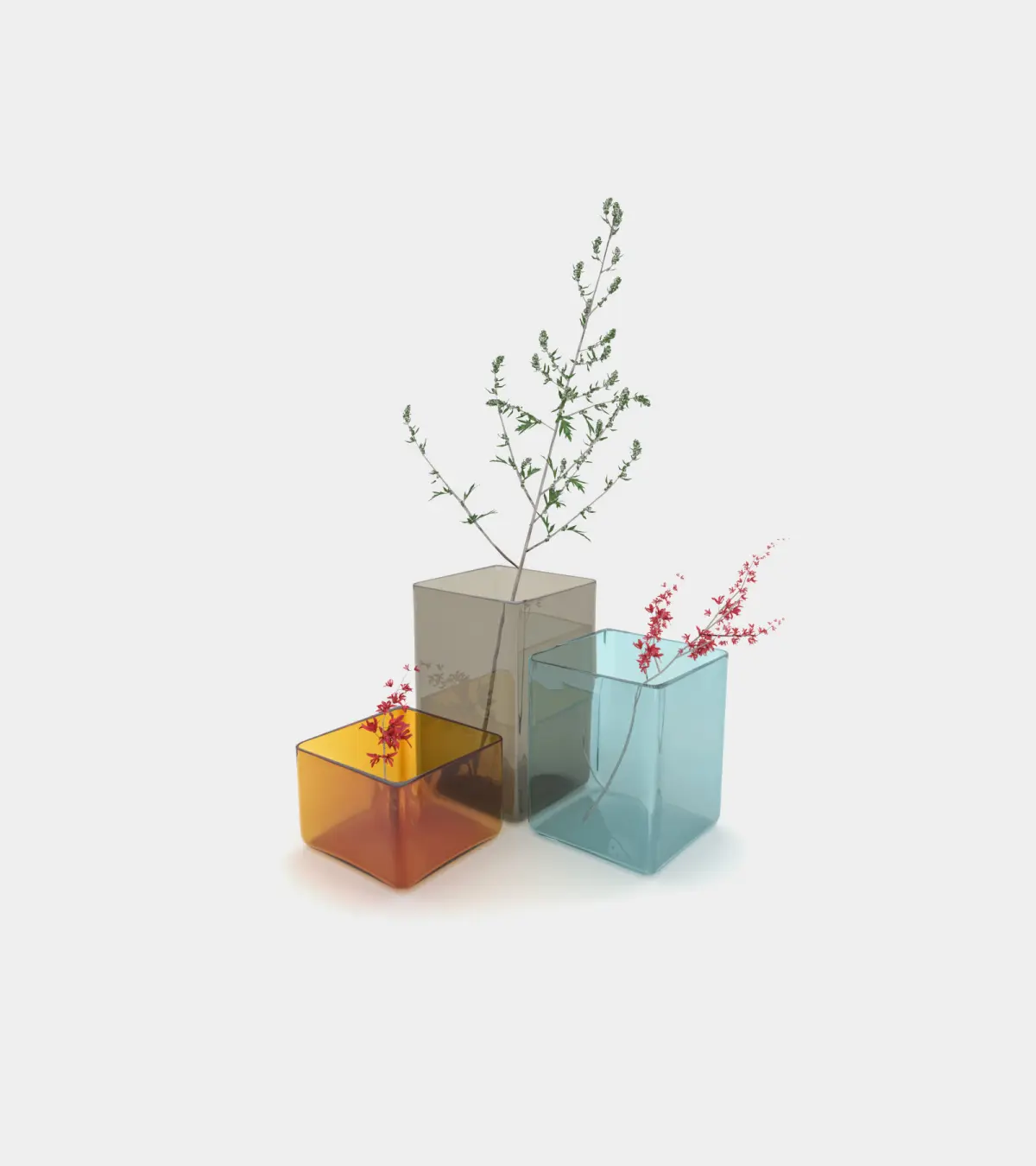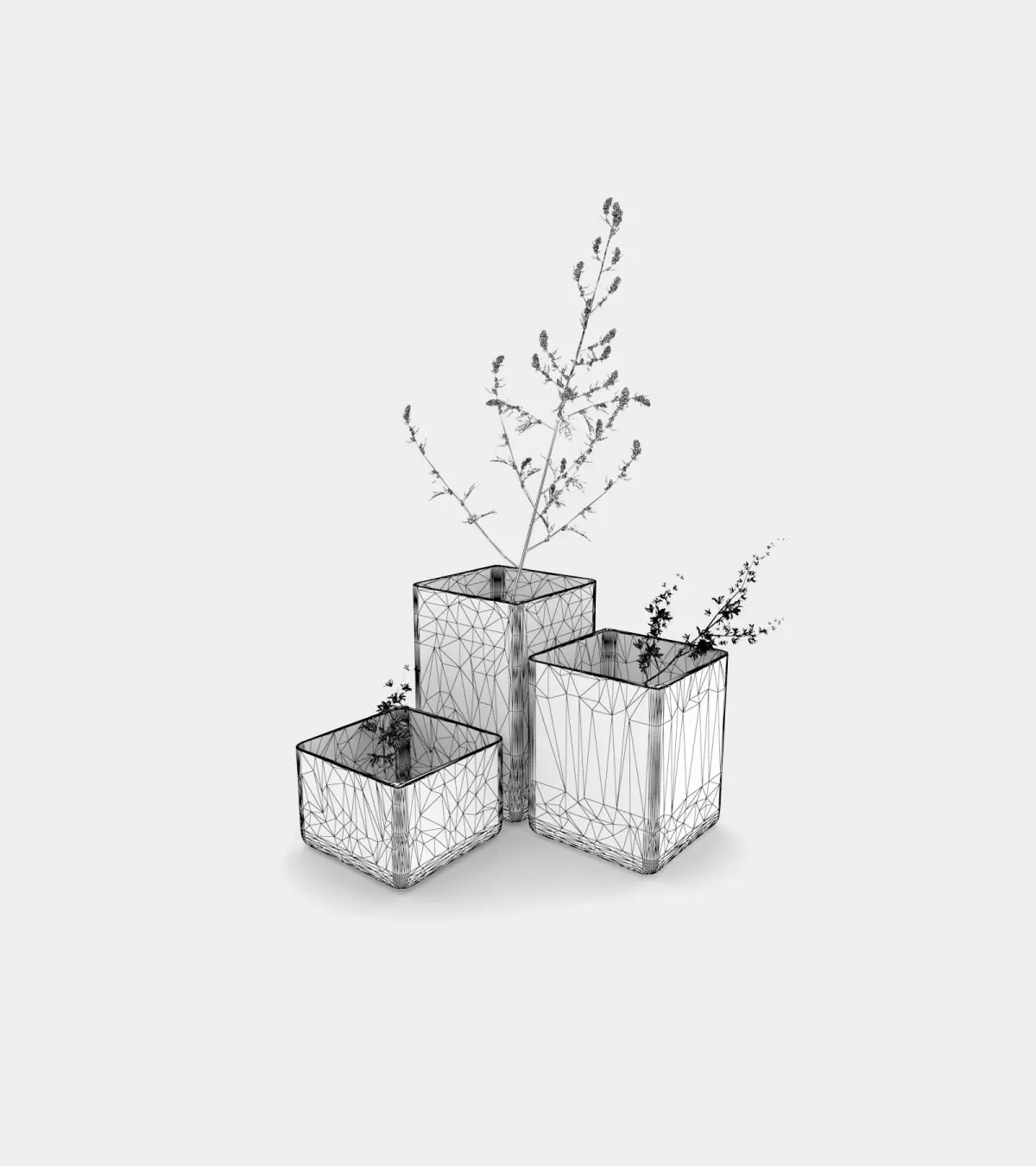 Photorealistic 3D model colored vases with plants will be a terrific decoration in your next 3D animation