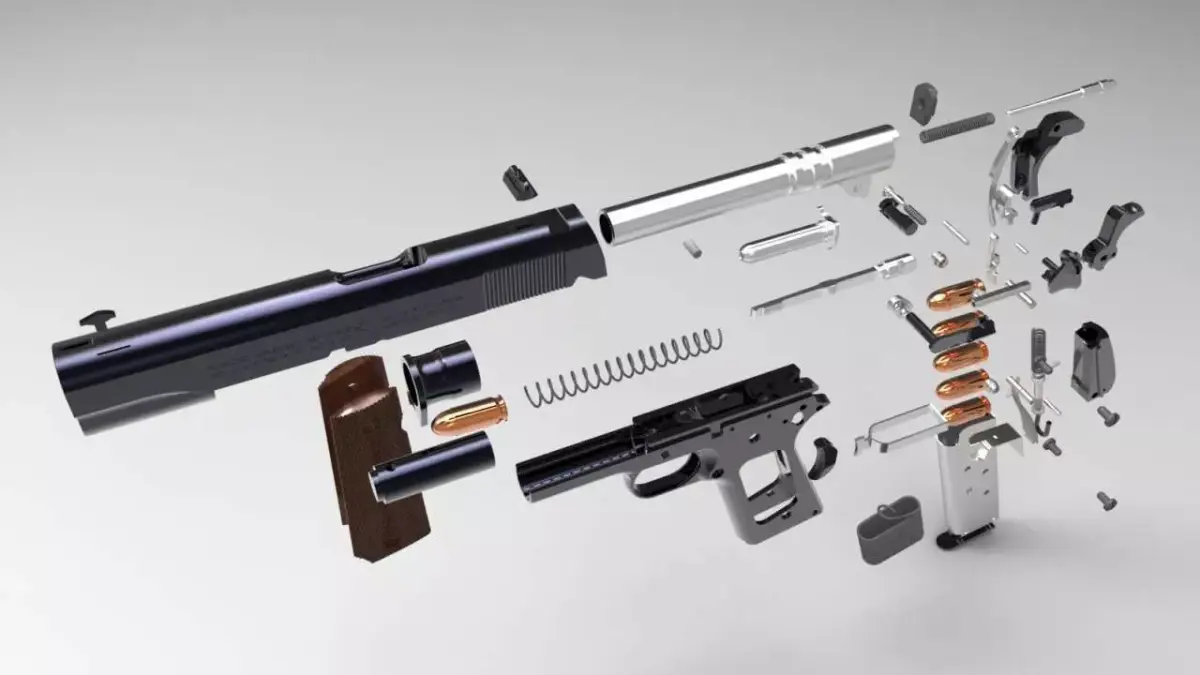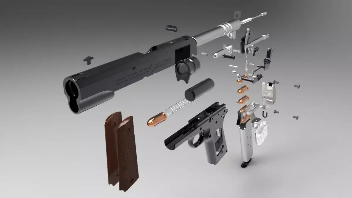 Colt 1911-A1 Model Goverment Pistol model Orignal CAD system - Pro/E WF4. Available in two versions :