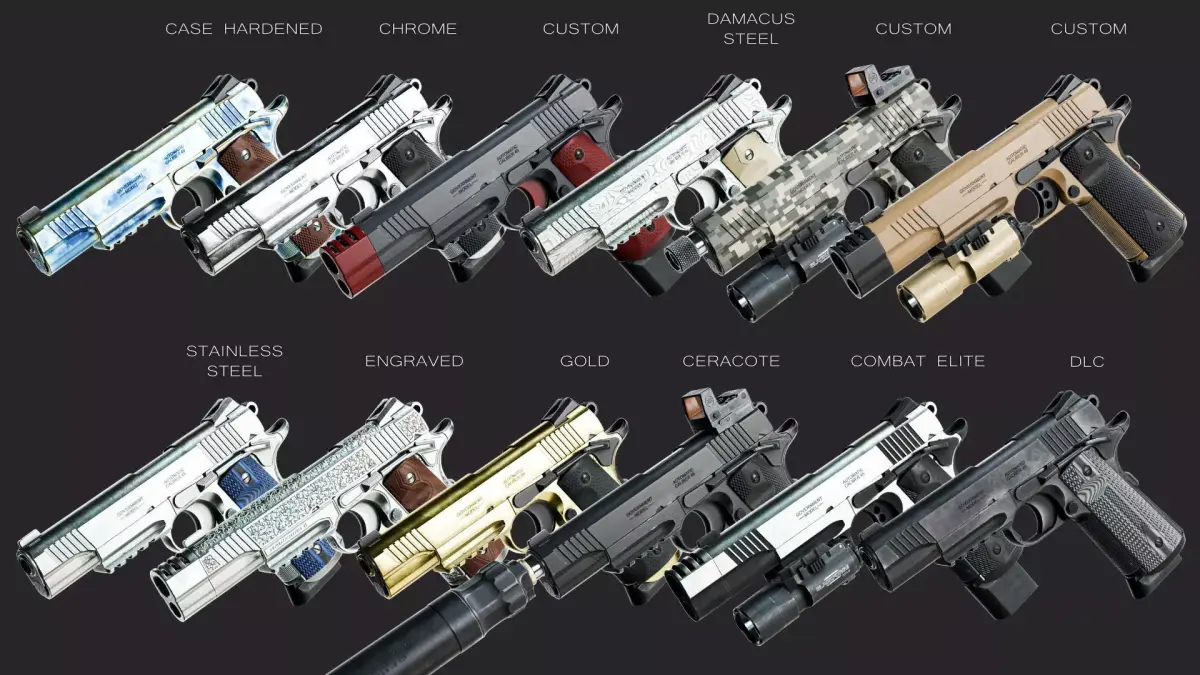Create unique looks of your Colt 1911 pistol with 4 different accessories, 5 modifications and 9 skins which you can combine to your liking.