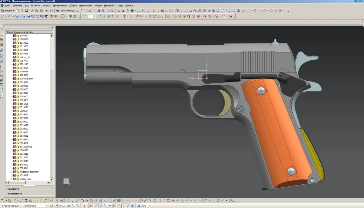 Детали пистолета colt m1911-a1деталировка всех позиций в stpисходная сборка и деталировка в stpисходники сделано NX 7.5деталировка в NX 7.5 (с историей построения ) по вашему запросу
