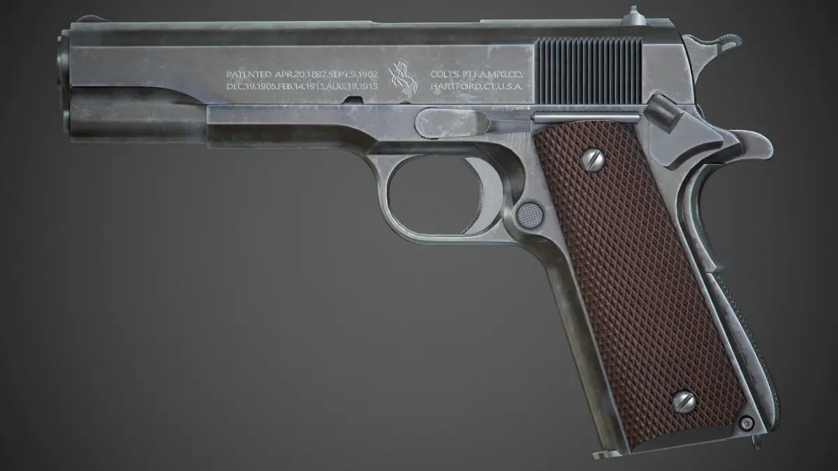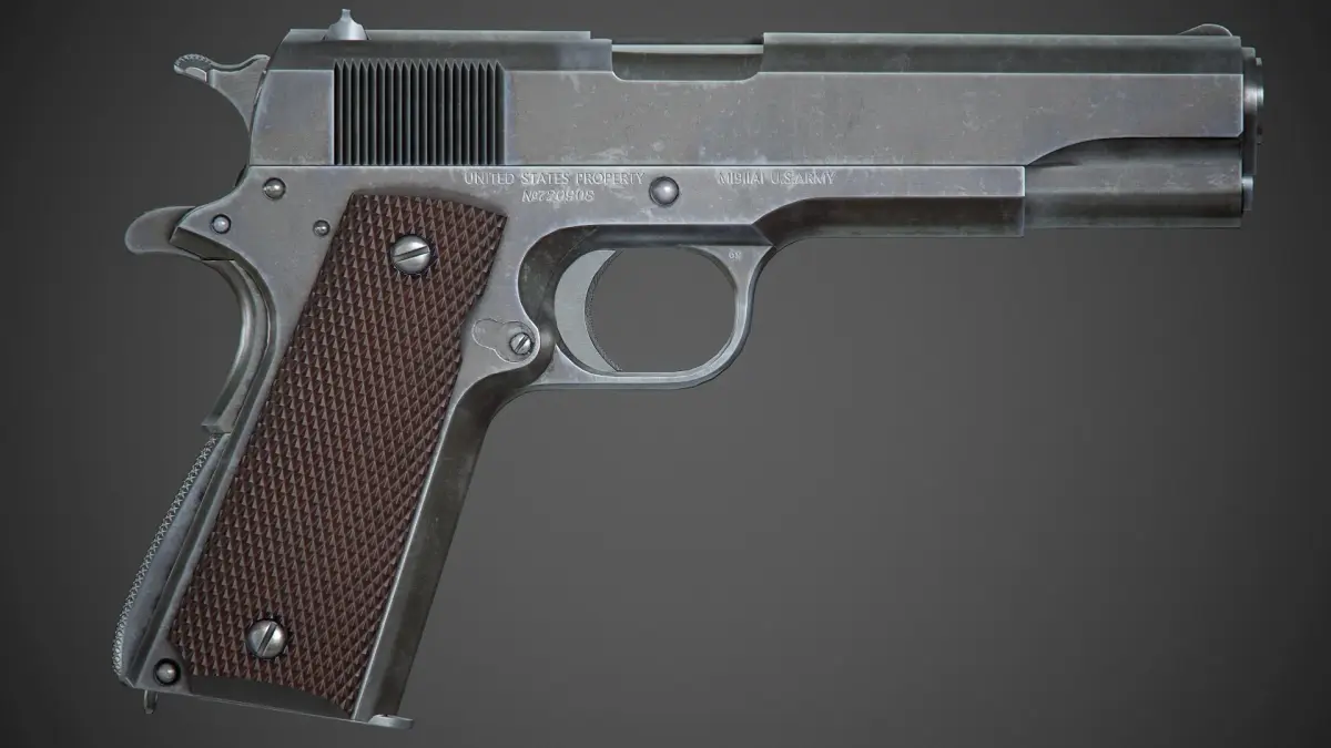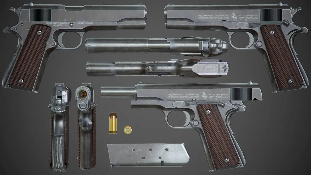 High quality model of the famous pistol Colt M1911 A1 with extra detail textures. Used by the US Army during the WWII.