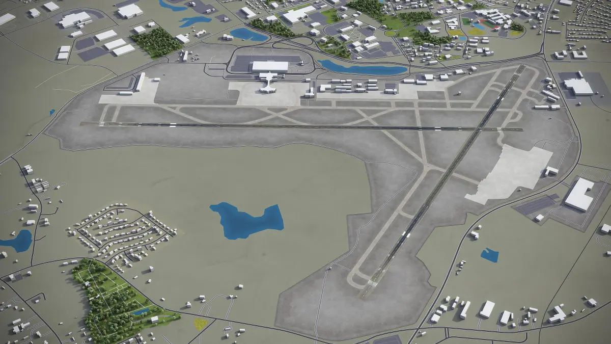 This is exact and accurate to scale 3D model of Columbia Metropolitan Airport (CAE) and its surrounding area based on GIS data (May 2020)