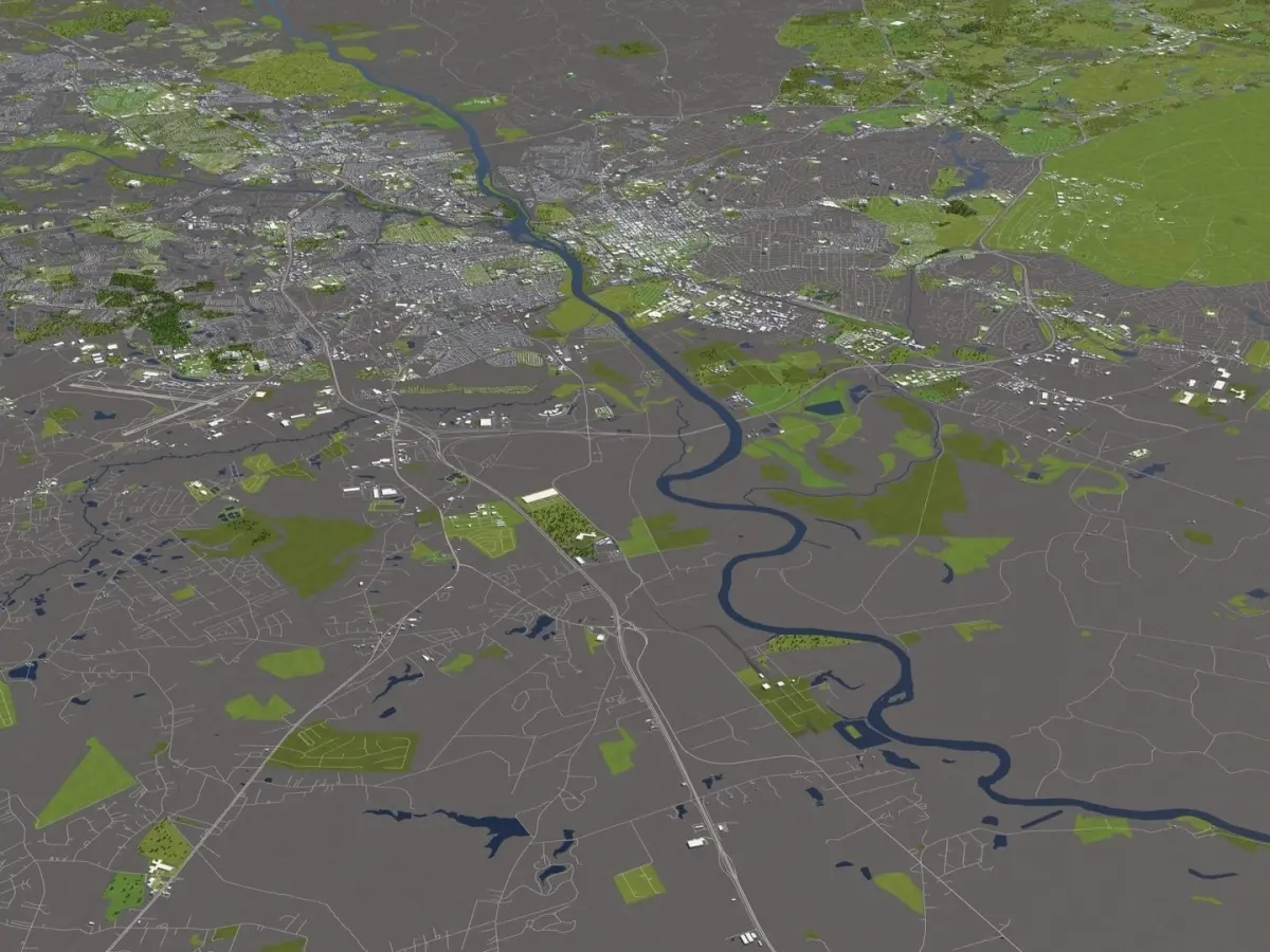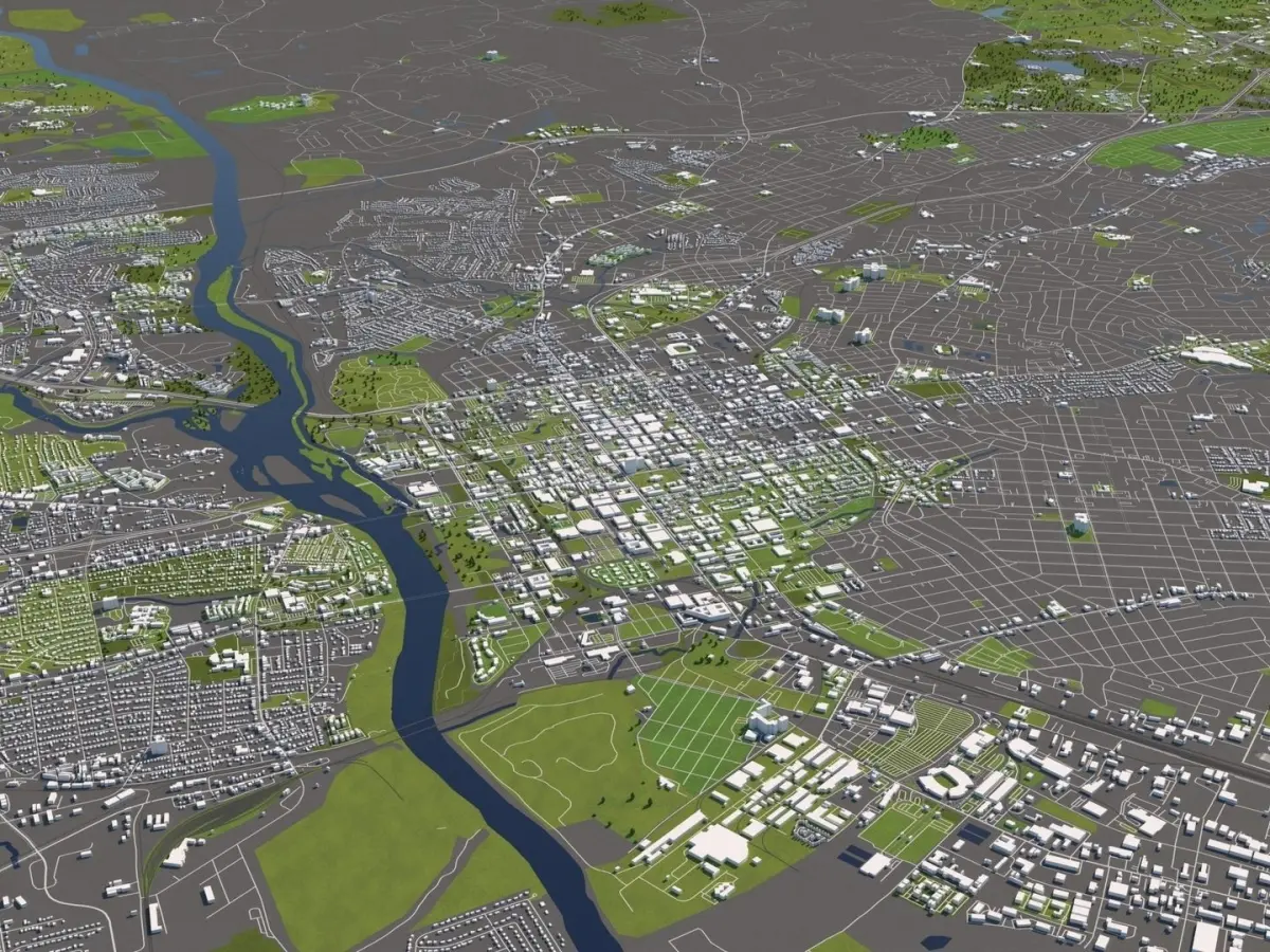 A DETAILED 3D MODEL CITY MAP OF COLUMBIA, SOUTH CAROLINA, USA: