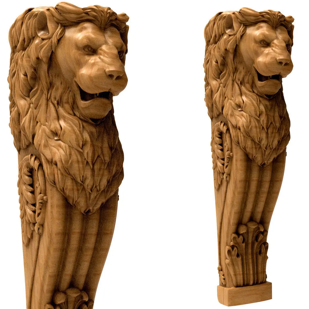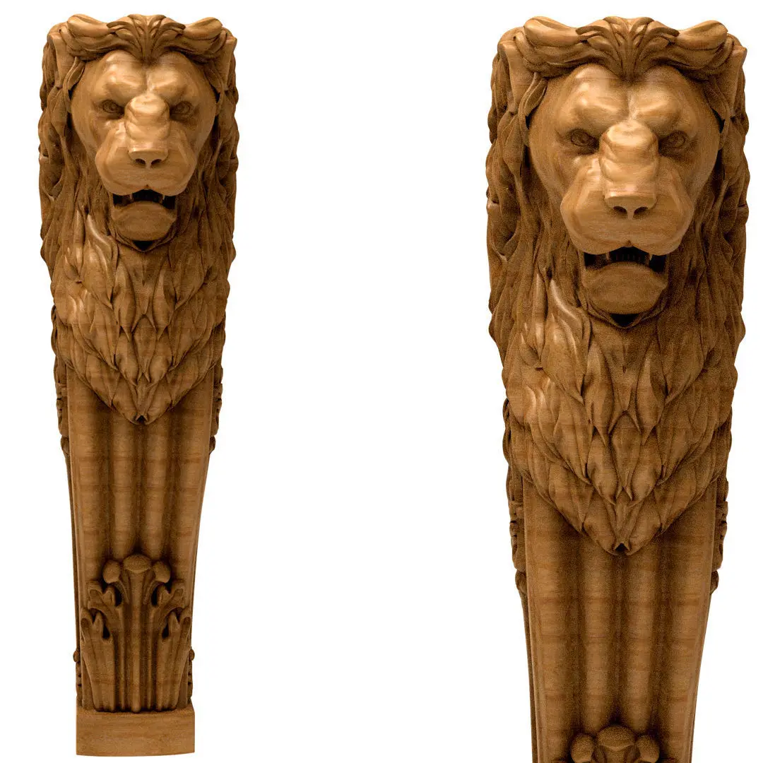 Column 3D model wood carving of lion 3D model