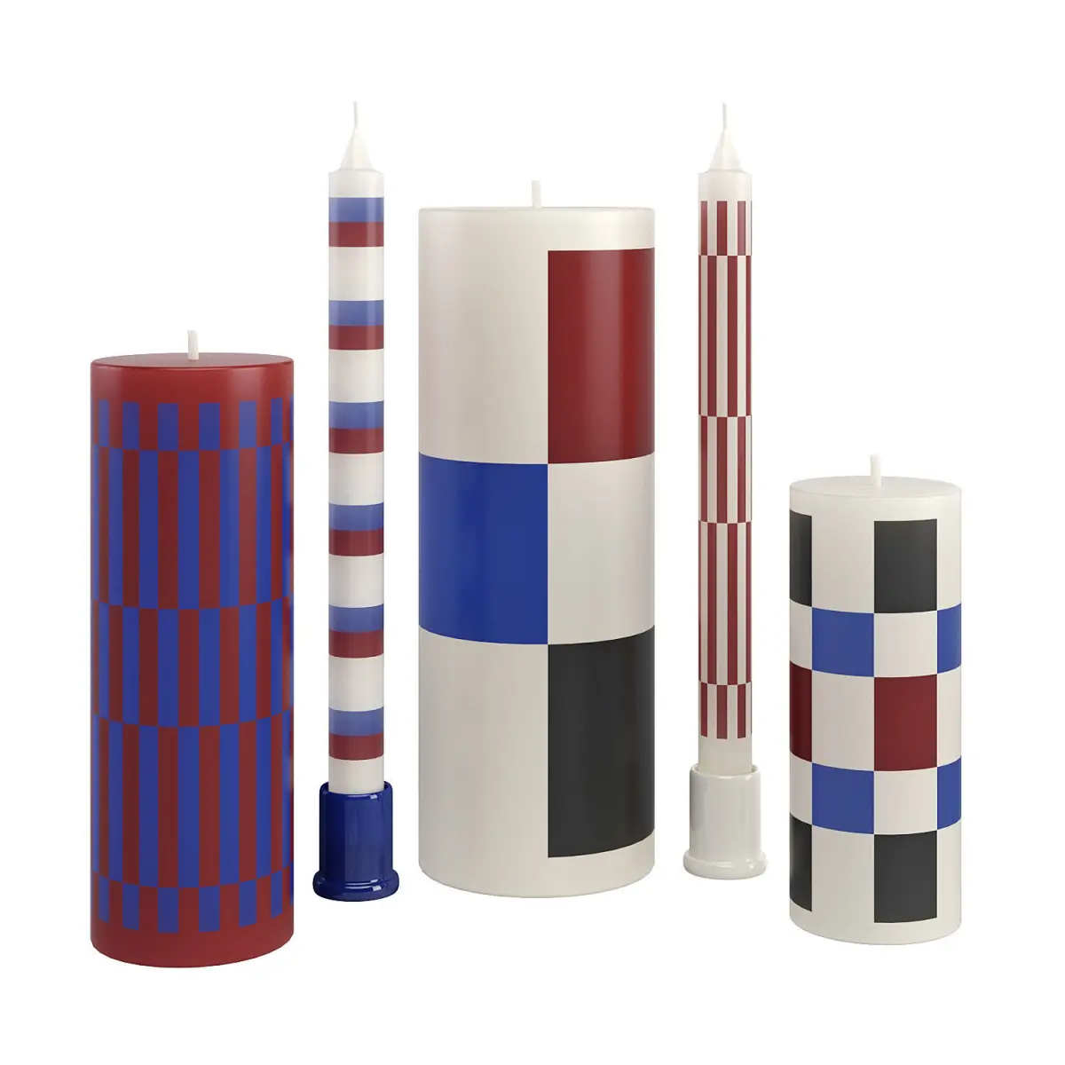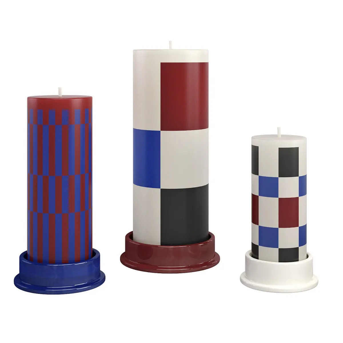 With their solid shape and colorful stripes all around in a variety of vertical and horizontal variations, Hay candles bring a playful and modern touch to your decor.
