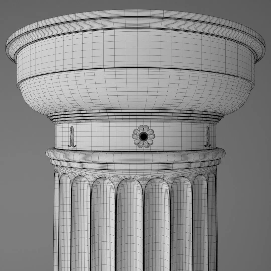 Classical column of the Roman Doric Order, inspired by Andrea Palladio's The Four Books of Architecture, made entirely in Blender. The hi-polygon model was made according to proportions described in the book and is 54.414 cm wide and 3.2 m tall.It has 4 named objects (column, flower, leaf and pedestal) and 321504 polygons (only quads and some tris)The texture's resolution is 1024x1024 and the archive contains the diffuse, normal and specular maps.Rendered in Cycles. Backdrop and camera not included.
