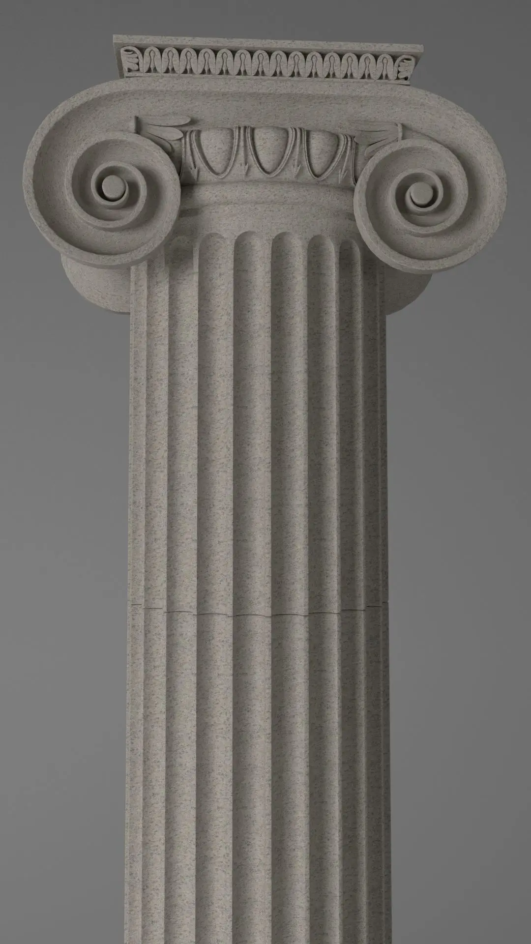 Classical column of the Roman Ionic Order, inspired by Andrea Palladio's The Four Books of Architecture, made entirely in Blender. The hi-polygon model was made according to proportions described in the book and is 59.803 cm wide, 53.195 cm deep and 3.6 m tall.It has 7 named objects (column, abaco, echina, leaves, top side, voluta and pedestal) and 607264 polygons (only quads and some tris)The texture's resolution is 1024x1024 and the archive contains the diffuse, normal and specular maps.Rendered in Cycles. Backdrop and camera not included.