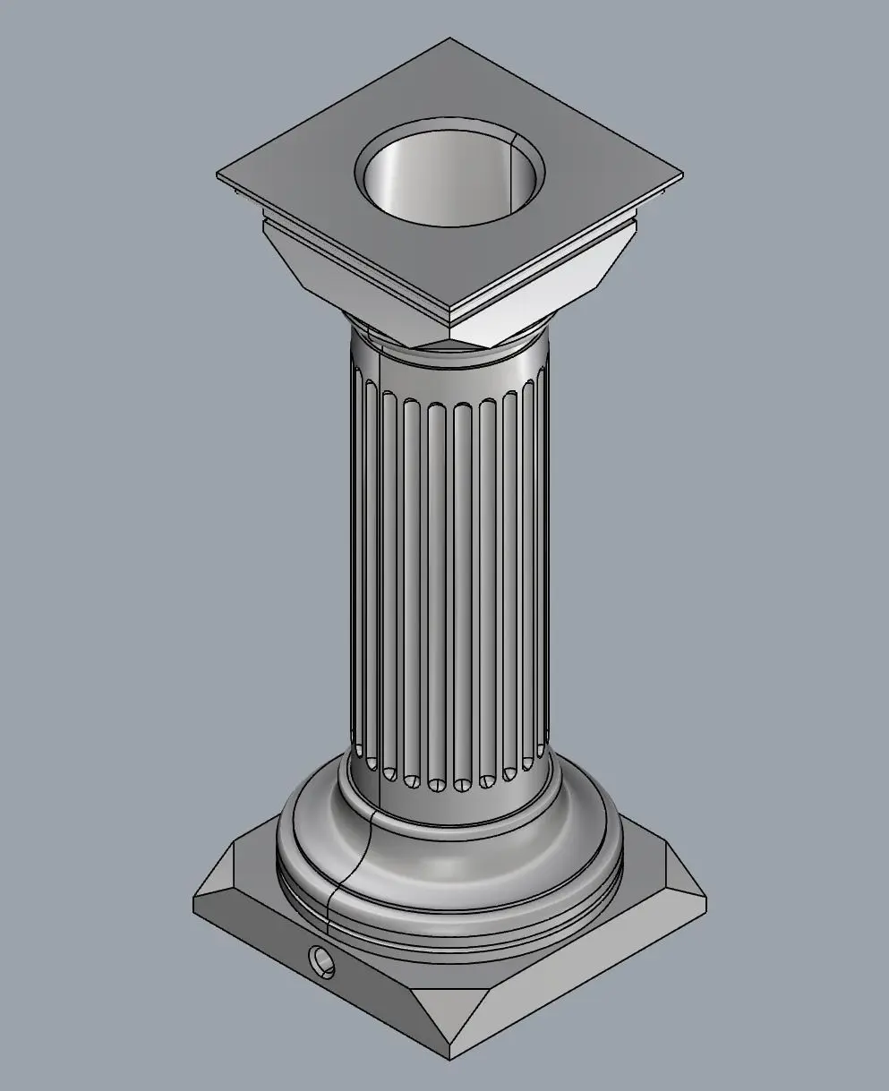 3D Model of a classical architectural element, a Doric Order Column used in ancient greek and later roman architecture. This model has been designed to hold a standard E27 bulb on the top with input wiring channel to the back for a clean and neat interior decoration. Distinct shadows will be casted by the bulb as it seats atop the column.
