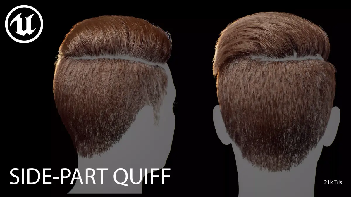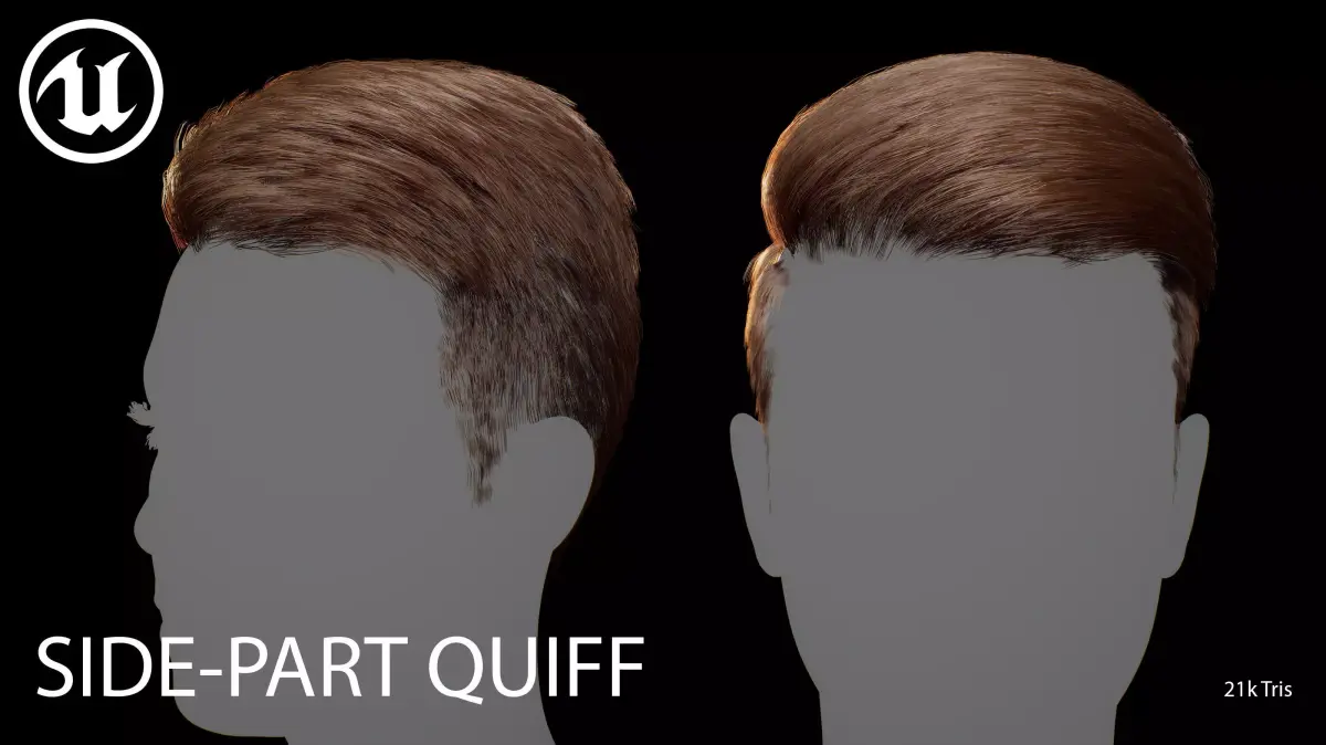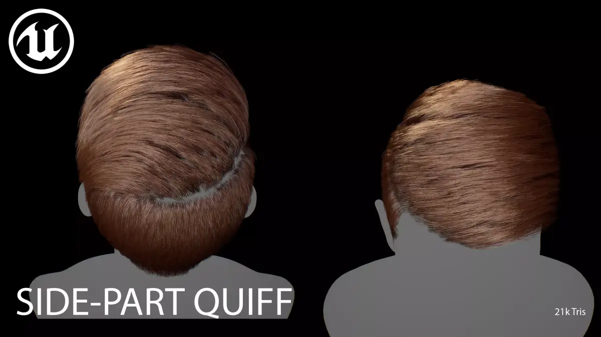 This elegant real-time Comb-over with a hard part hairstyle is designed for use in games, cinematics, and real-time applications. Hair textures created with Fibershop and optimized for Unreal Engine 4-5, this asset delivers both performance and high visual quality.