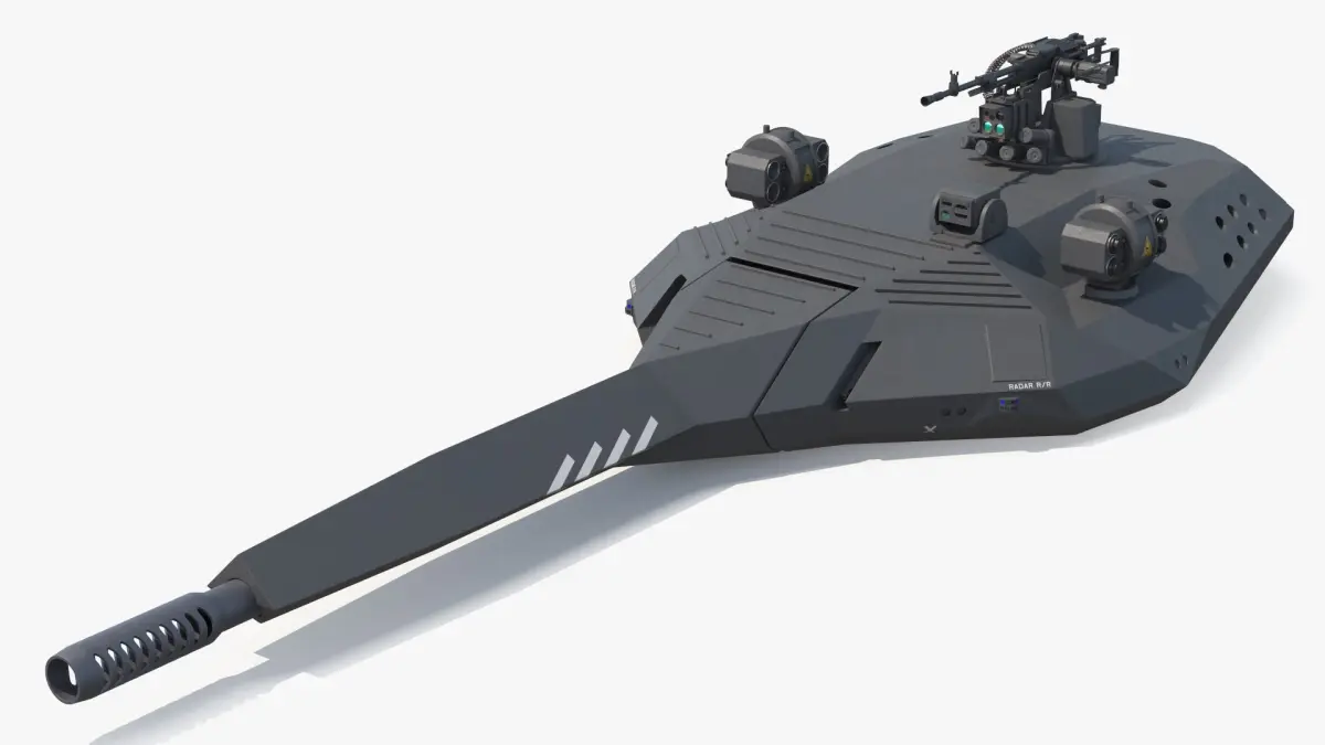For military simulations, defense system development, armored vehicle design, wargaming environments, training simulations, VR/AR combat scenarios, concept art, cinematic productions, weapon system visualization, and promotional projects related to advanced combat equipment.