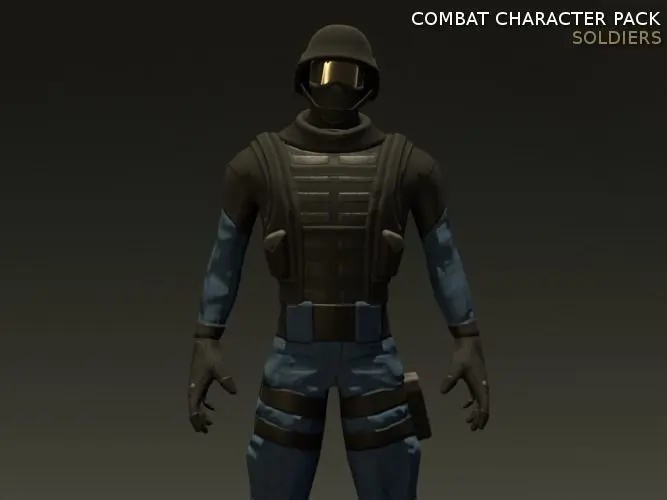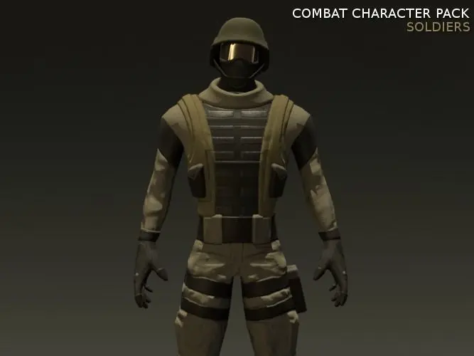 Game Ready rigged lowpoly Soldier Pack, with 5 different texture sets (Separate texture sets for PBR, and Unlit Materials).