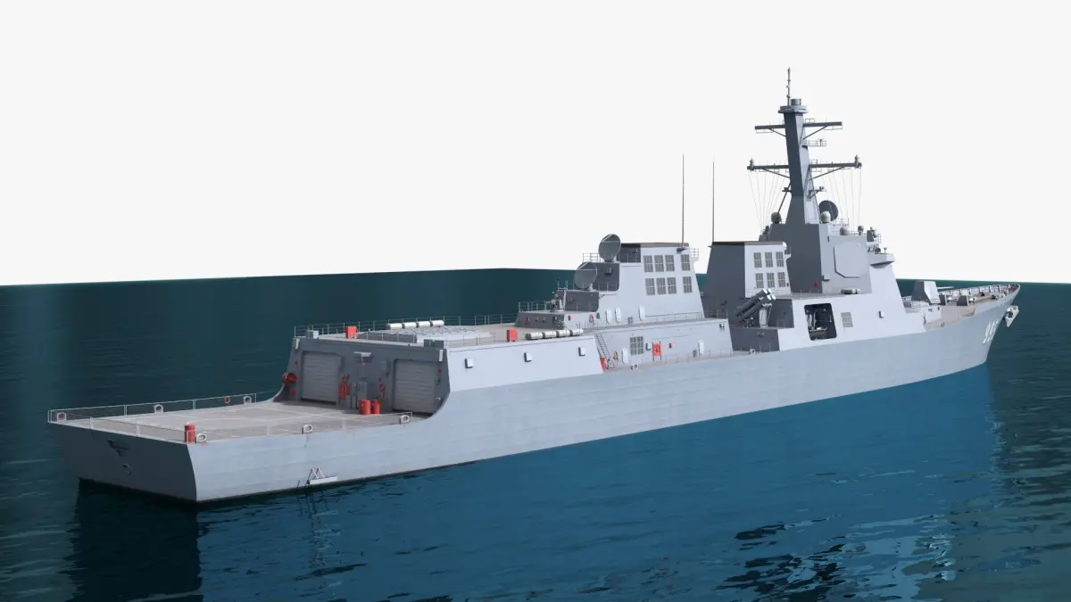 Combat Destroyer KDX III Batch II Aegis on Water is a 3d model of a modern naval warship, specifically designed for maritime defense and operations.