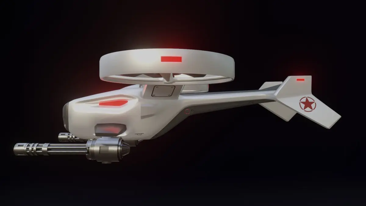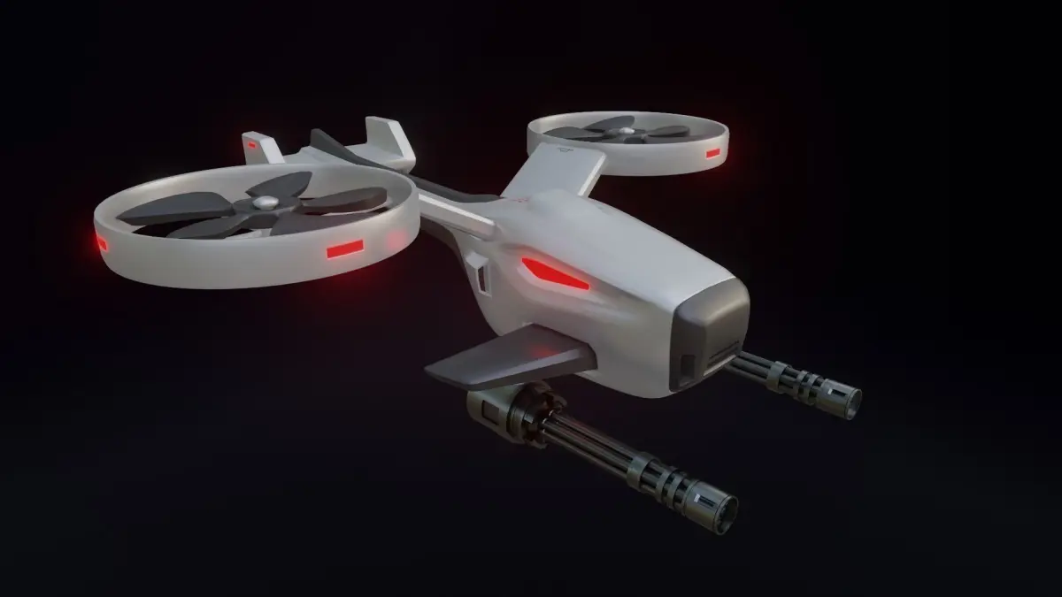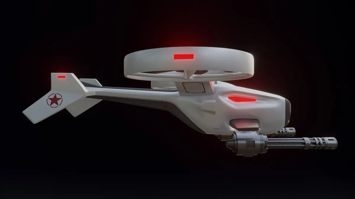This is a low poly 3D concept combat drone model. The model is unwrapped and the textures are 4096x4096 resolution. All textures and materials are included.
