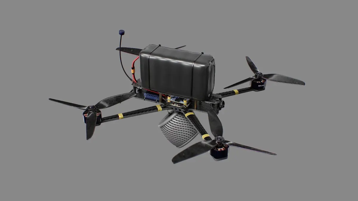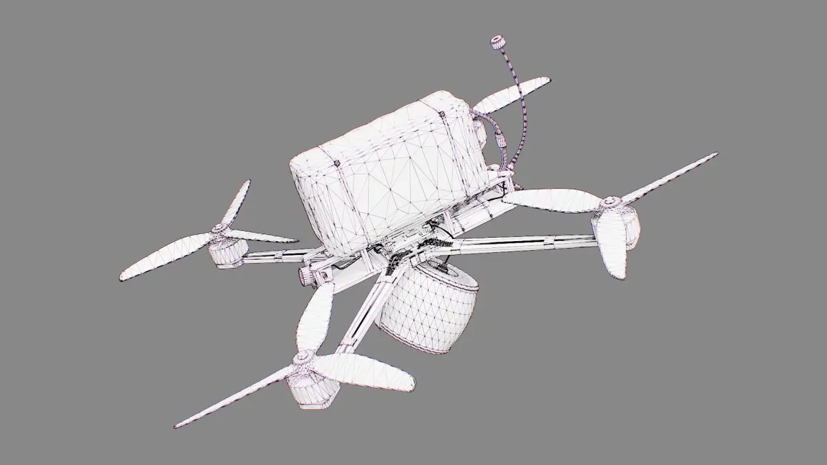 An affordable 7-inch combat drone with a high-explosive fragmentation warhead. A drone combining classic design with advanced technology for engaging the enemy. Designed for long-range flights and operations behind enemy lines. 3D model without animation!!!