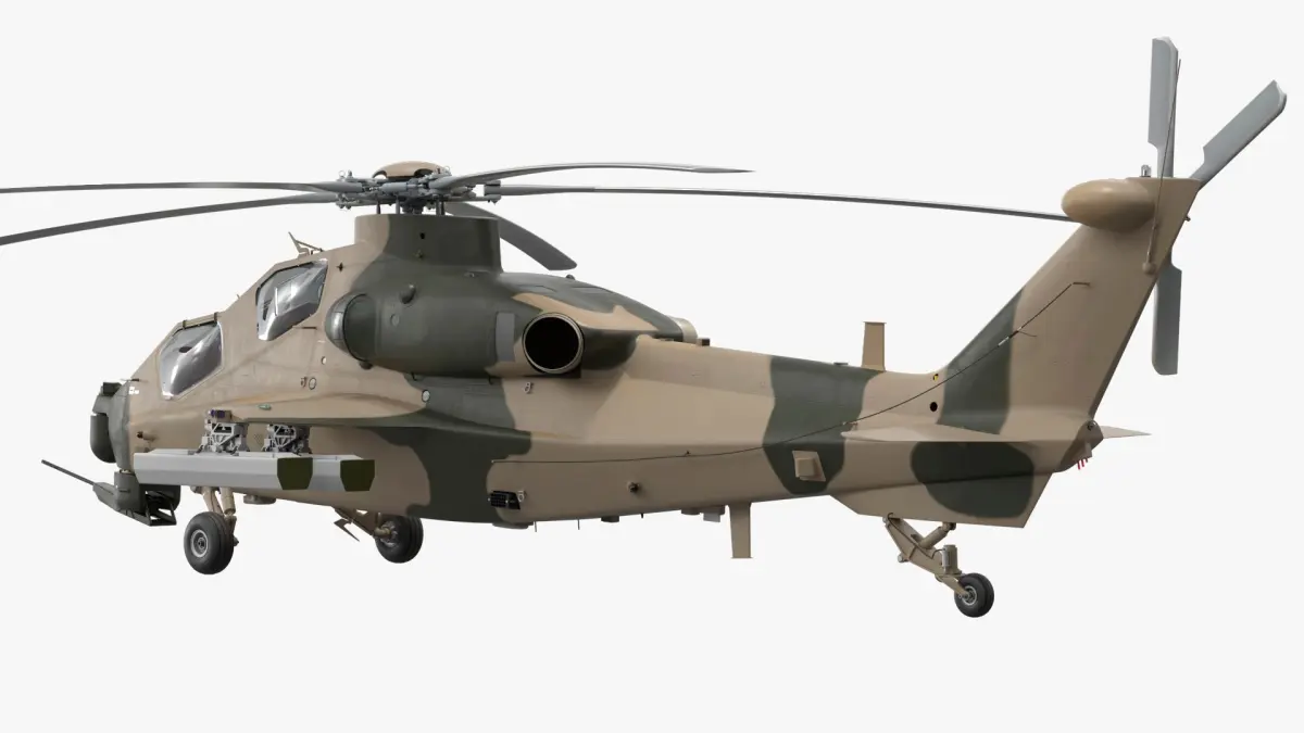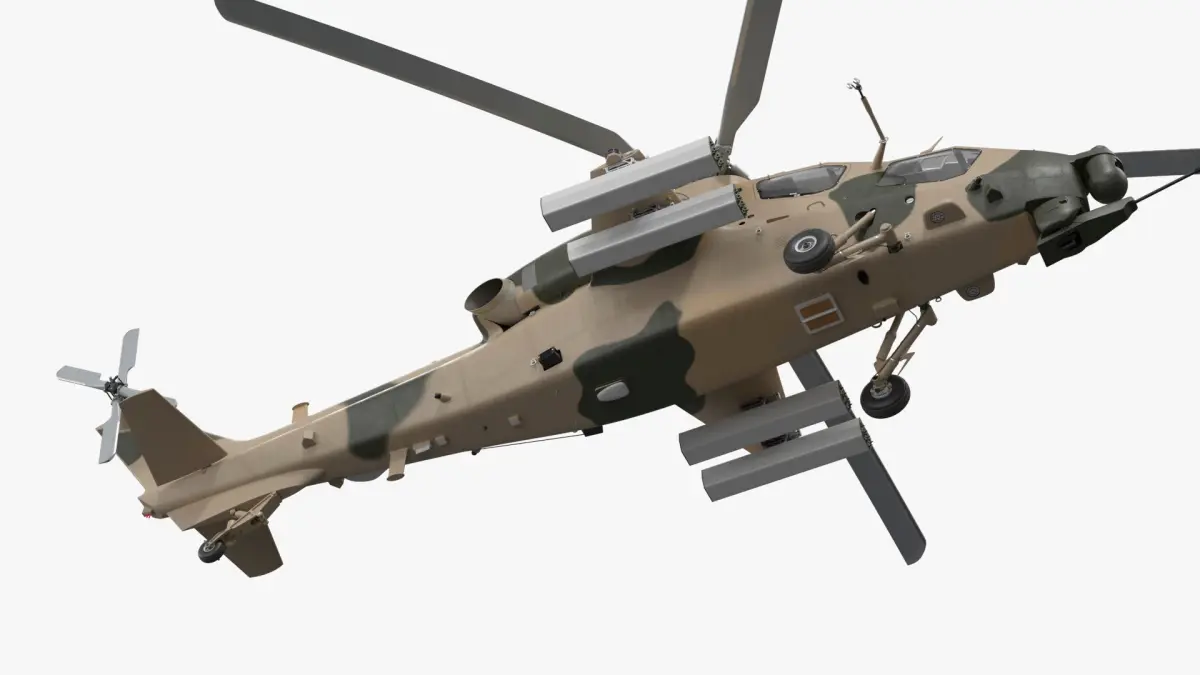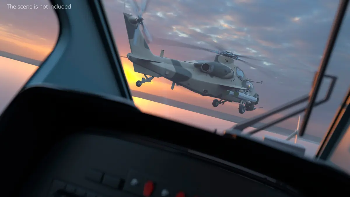 The model is designed with attention to structural and functional realism, including detailed rocket launchers, aerodynamic fuselage shaping, landing gear, rotor assemblies, and optical targeting modules. It maintains a balanced polygon count for optimal performance in real-time rendering and simulation environments, while preserving high visual quality suitable for cinematic or educational use.