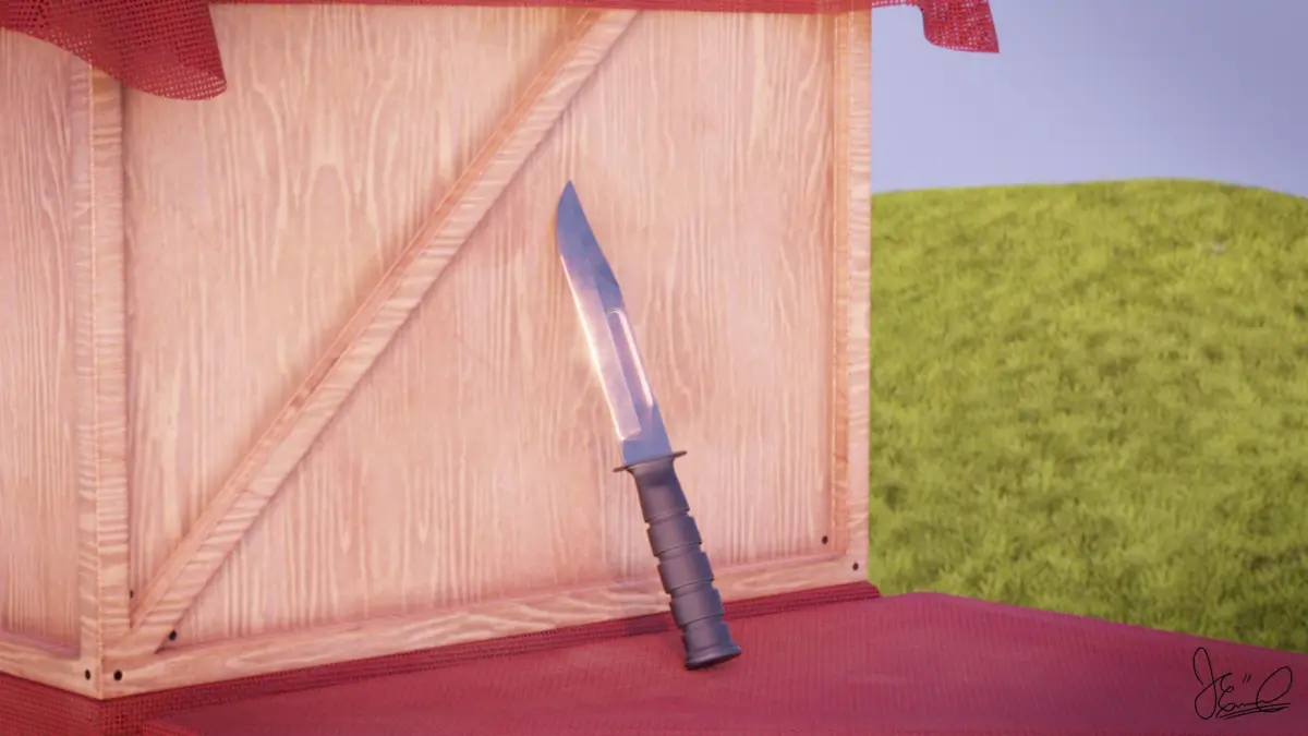 I wanted something abit challanging so I made a knife, and it turned out amazing. I know the fingerprints look really rough on the images with the black background and thats just because of the lighting if you see on the image i rendered with the crates the roughness is a nice amount. Also sorry that the glare looks abit weird thats just for asthetic but has nothing to do with the model. I really hope you enjoy using this model for your work because i enjoyed making it. There are no restrictions with this model/textures, you're free to use it for any means.