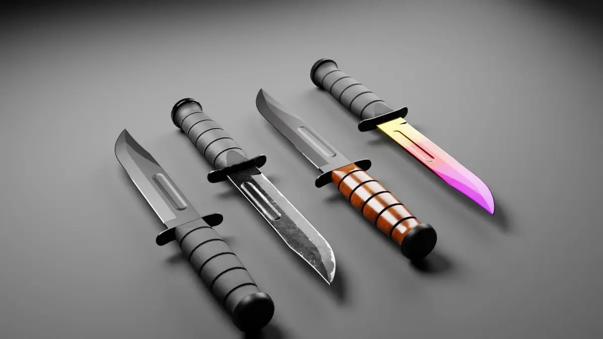 Low poly game ready Combat Knife(KA-BAR) collection created with Blender 3.3.1