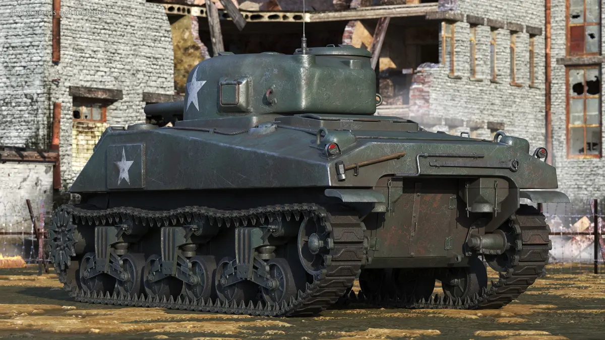 Combat M4 Sherman Tank Rigged for Cinema 4D is a 3d model of the iconic World War II battle tank, meticulously rigged for animation and detailed with accurate historical features.