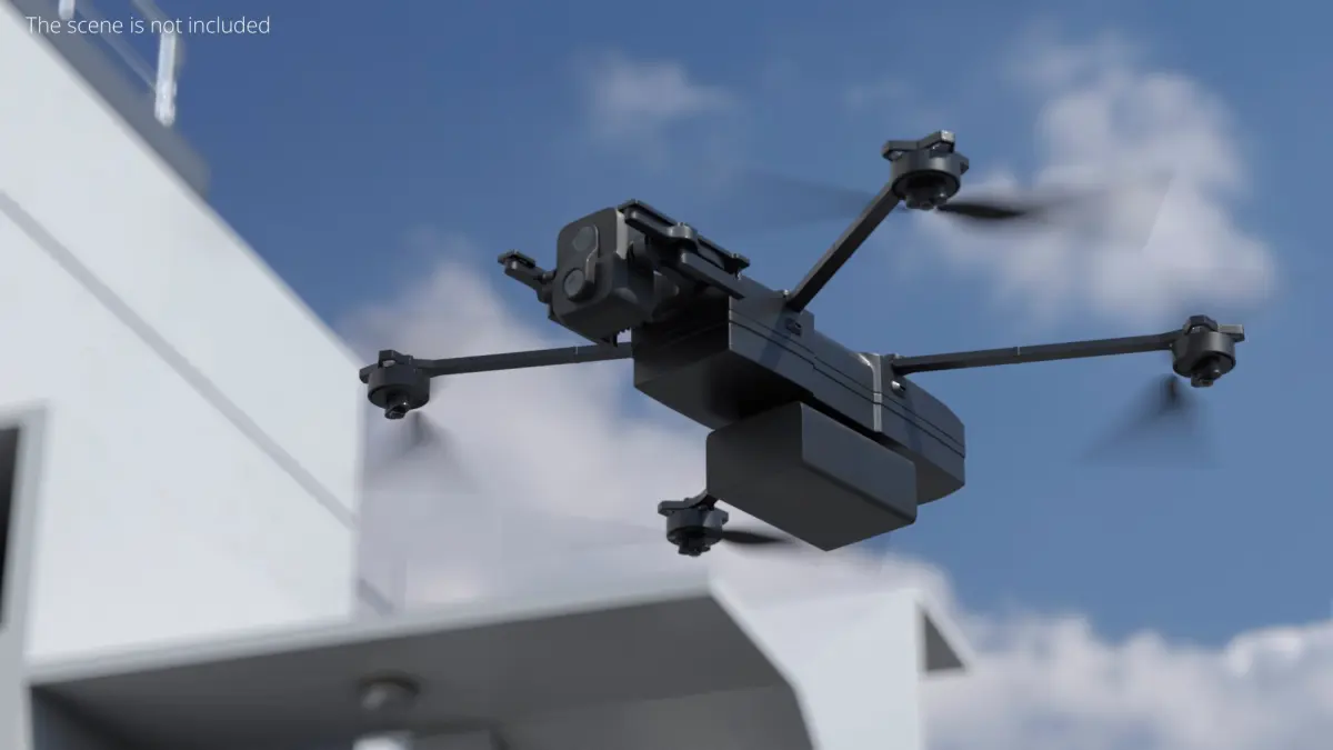 Combat Surveillance Drone Sonora Harmattan AI Black is a 3d model of a tactical quadcopter, designed for advanced aerial surveillance and reconnaissance missions.