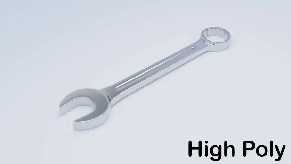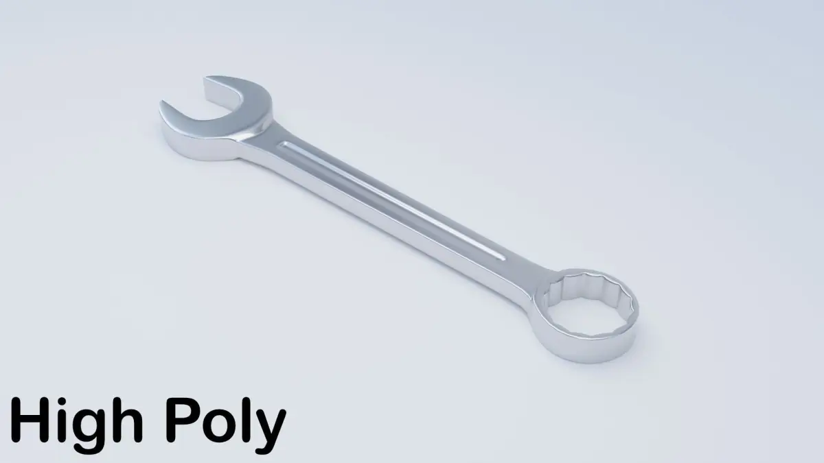 Combination Wrench 3D model made using Blender. These models are a combination of a regular open-ended wrench and a box-end wrench. There are two versions of the model that are included. One has a high polygon count and the other has a low polygon count and makes use of a normal map to add extra detail. Both models have a clean metallic look and have a simple design allowing it to have simple geometry.
