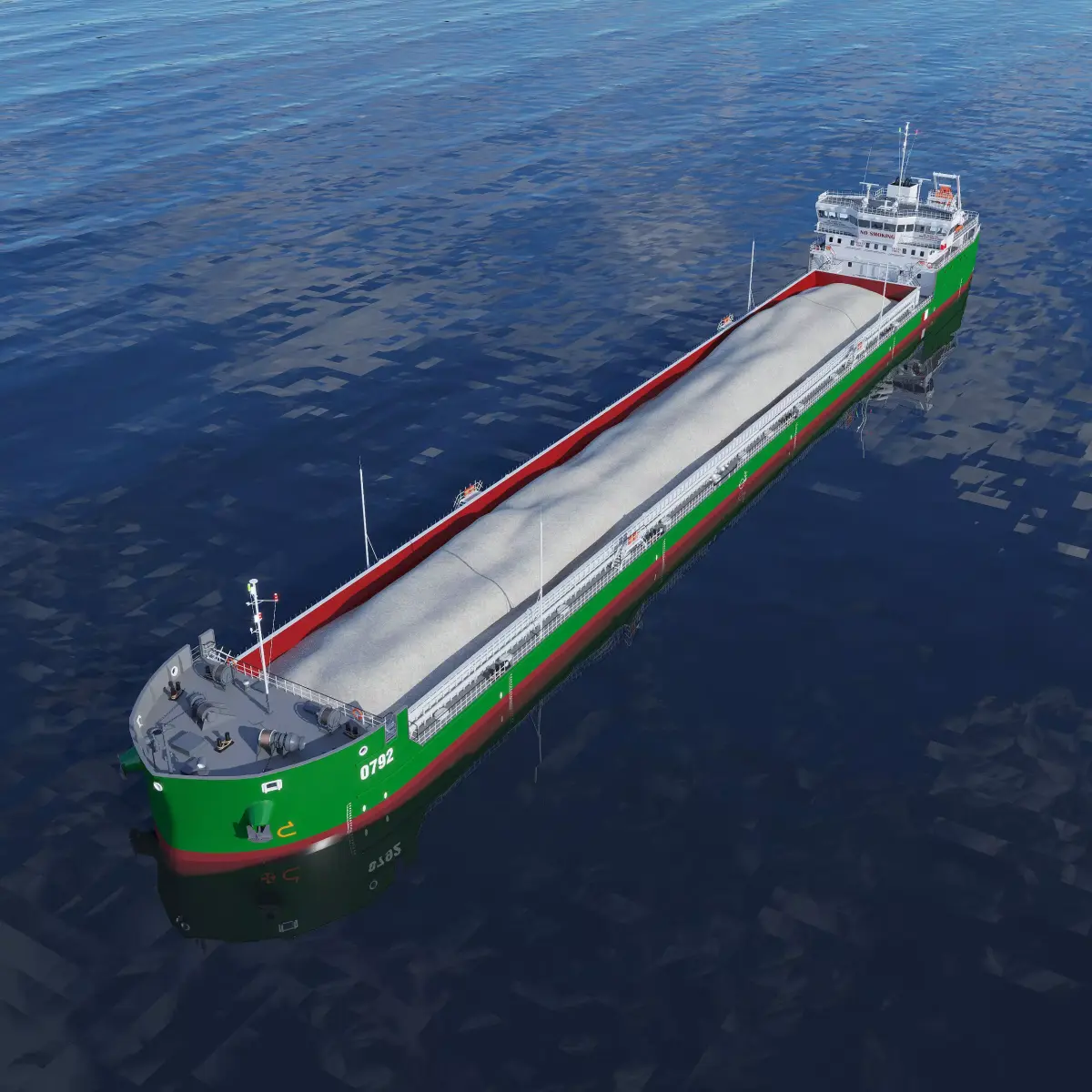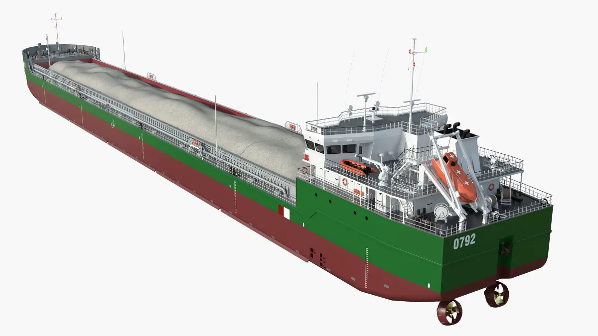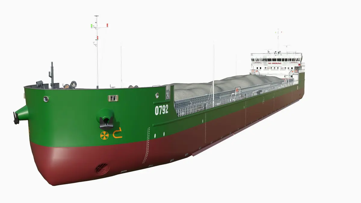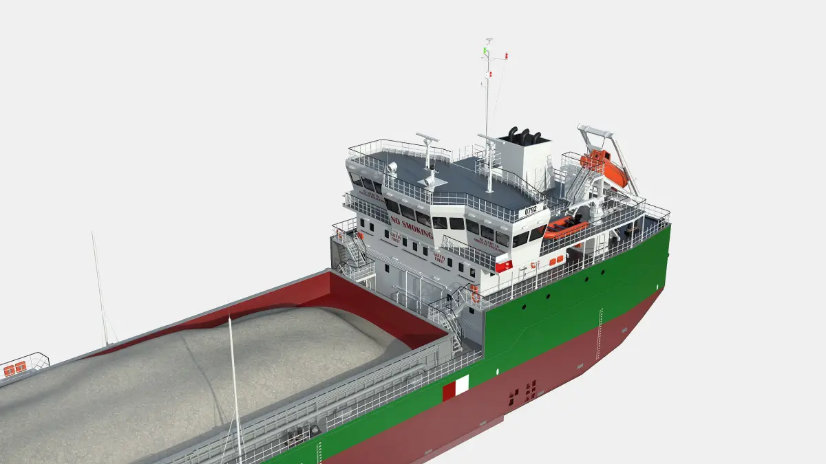 Features: Original file format - 3dMax, Maya To all objects and materials in a scene names are appropriated; Real world size; Coordinates of the location of the model in space (x0, y0, z0); Files with the model does not contain extraneous or hidden objects (lights, cameras, etc.); Photo-realistic model; Model ready for animation.Characteristic:Length: 140.85 mWidth: 16.70 mDepth: 5.00 mDraft (at sea / in the river): 3.60 / 3.527 mDeadweight (in the river with a draft of 3.6 m), t: 5589Fence height, m 2.00Cargo volume along the top edge of the fence: 2564 m³Crushed stone weight on deck (approx.): 4500 tVolume of freight and slop tanks (98%): 5653 m³