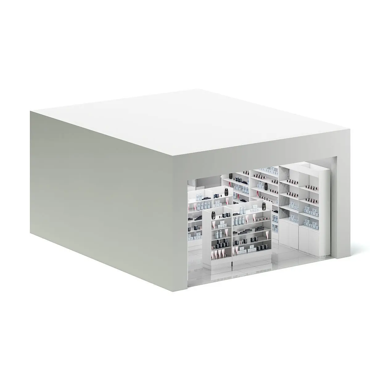 Cosmetics store 3d model with white front. Compatible with 3ds max 2010 (V-Ray, Mental Ray, Corona) or higher, Cinema 4D R15 (V-Ray, Advanced Renderer), FBX, OBJ and Unreal Engine.