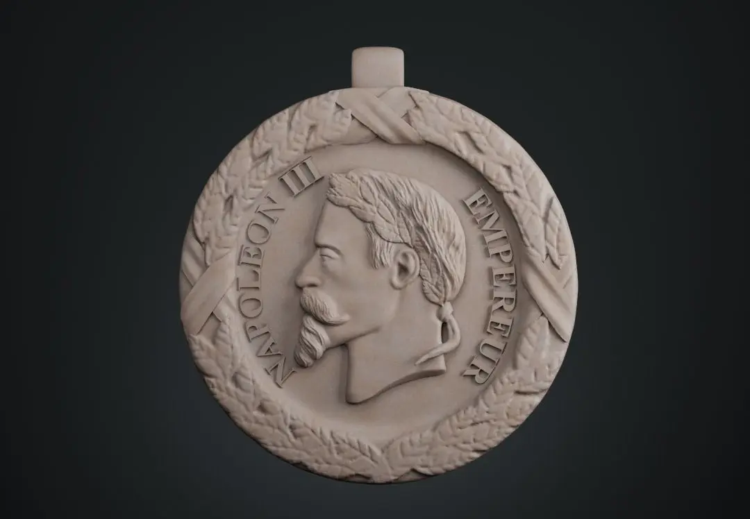 Commemorative medal of the 1859 Italian Campaign bas-relief is ready to 3D print. Médaille de la campagne d'italie in french