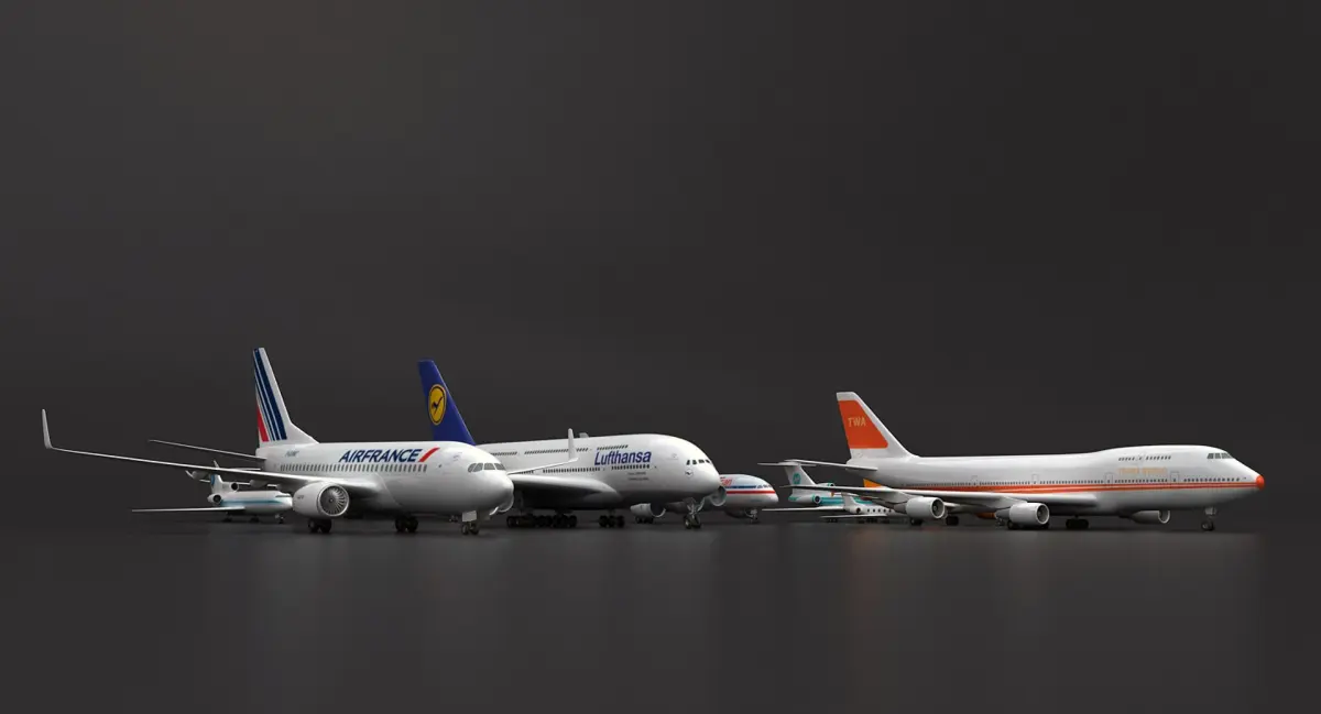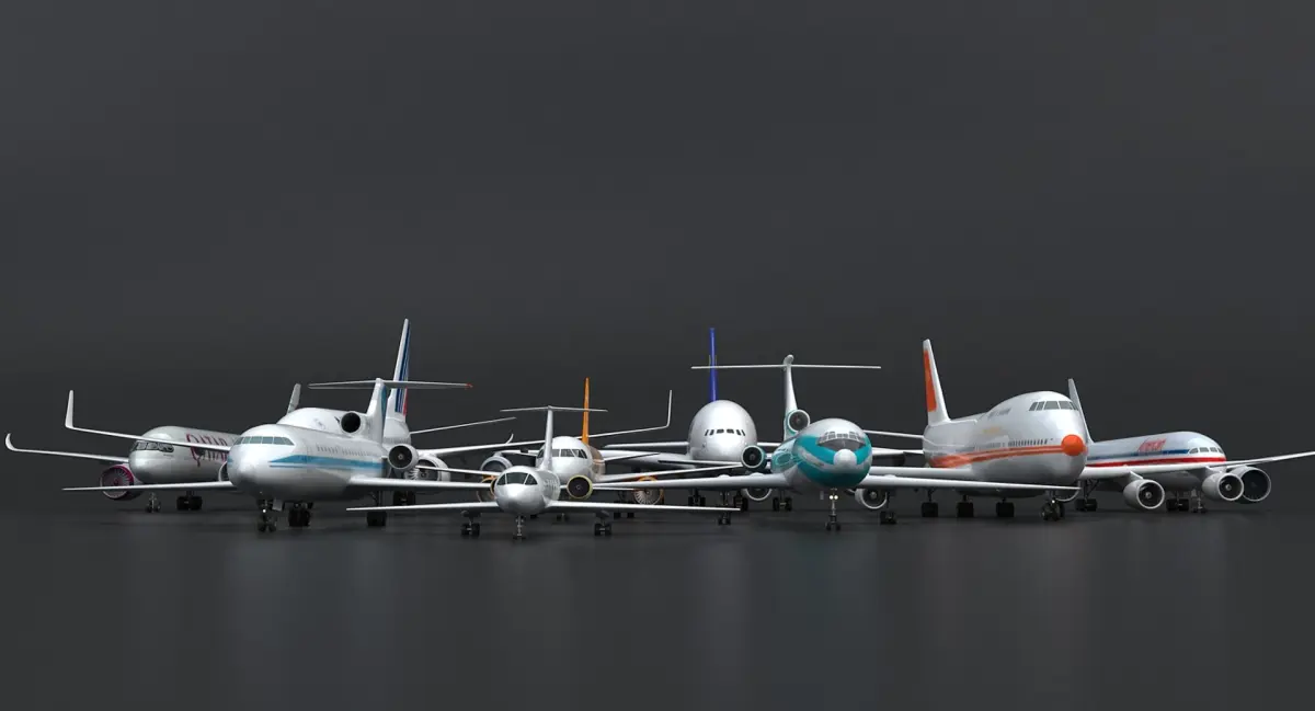 A collection of 9 different plane models