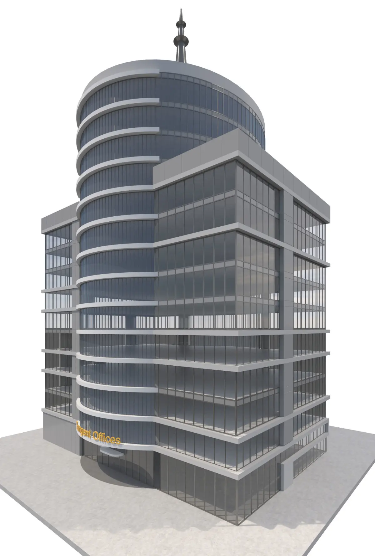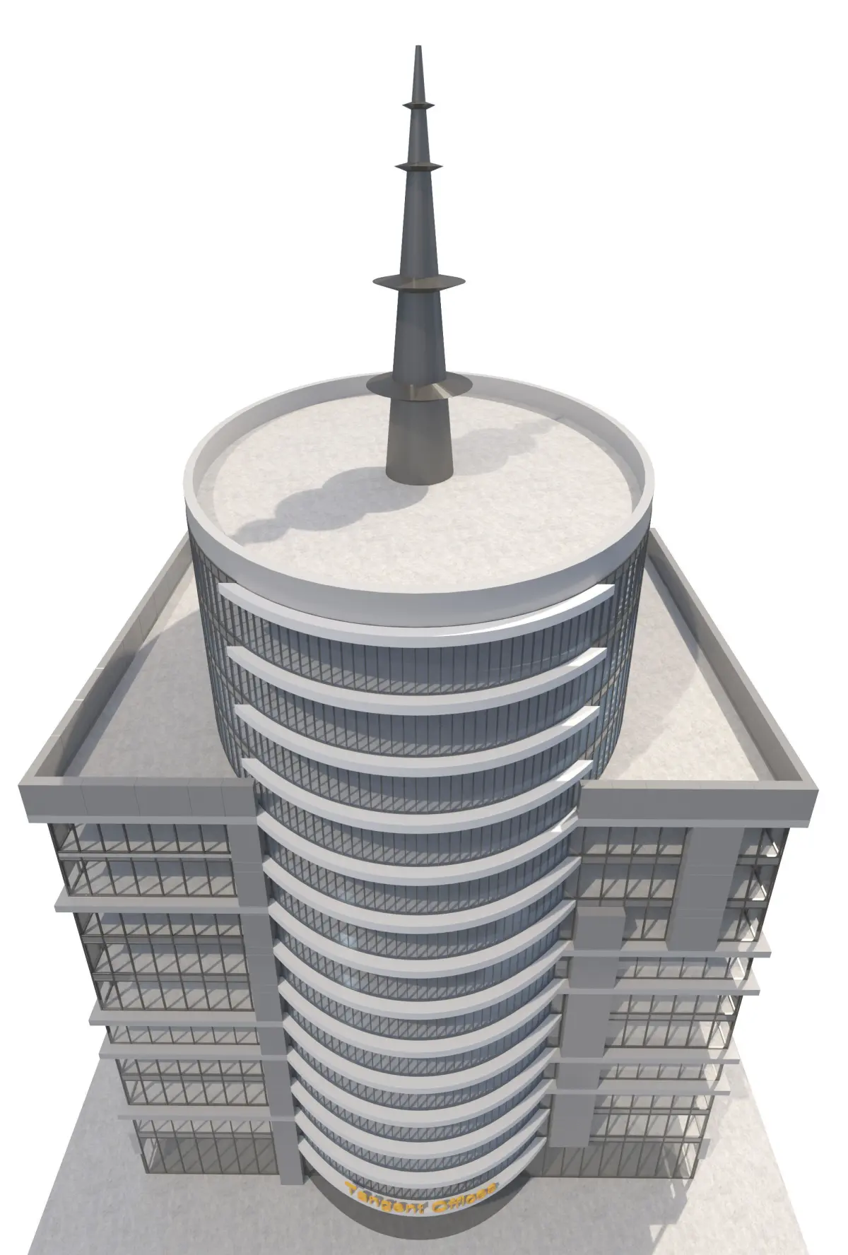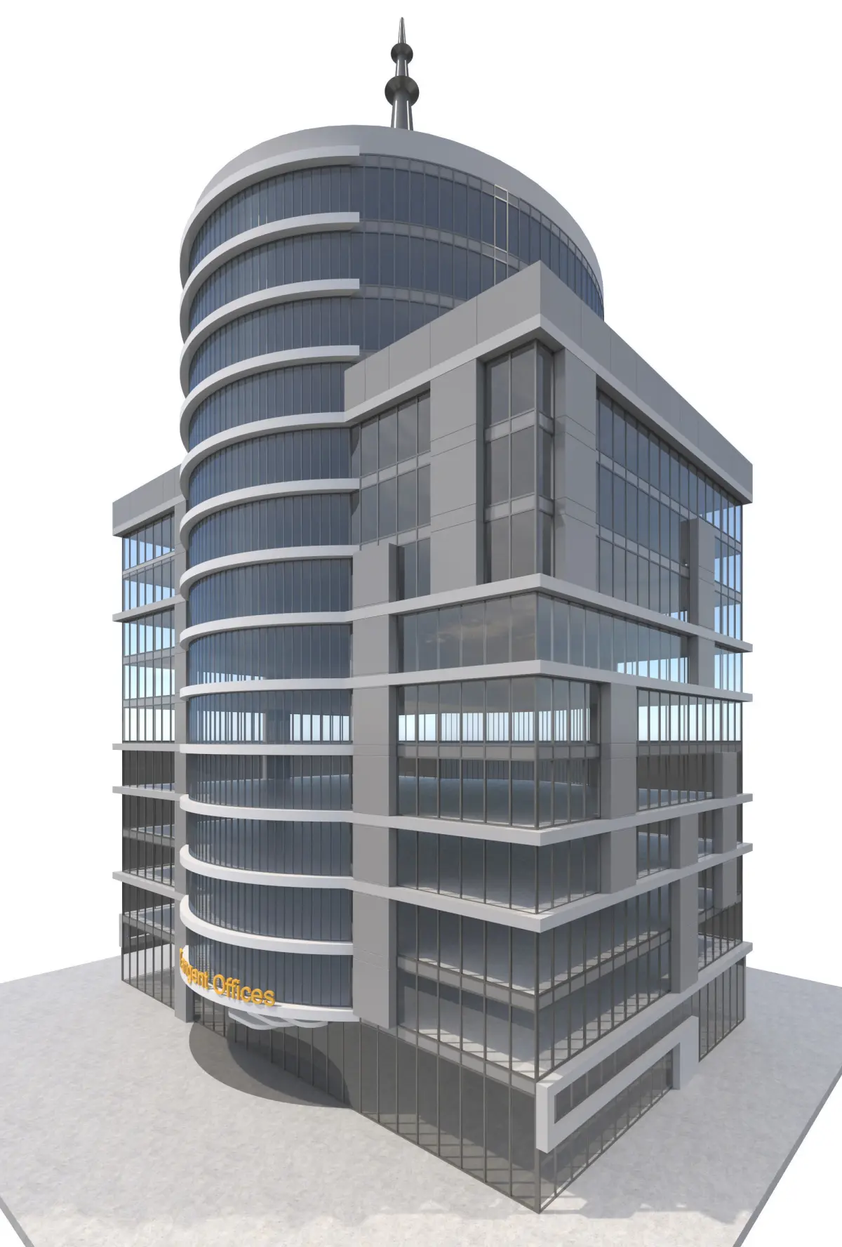 -Materials are Concrete, metal panels, Curtain Walls -Glass reflections may have to be adjusted based on scene-Antenna Included-Signage Included, can easily be modified to any name.