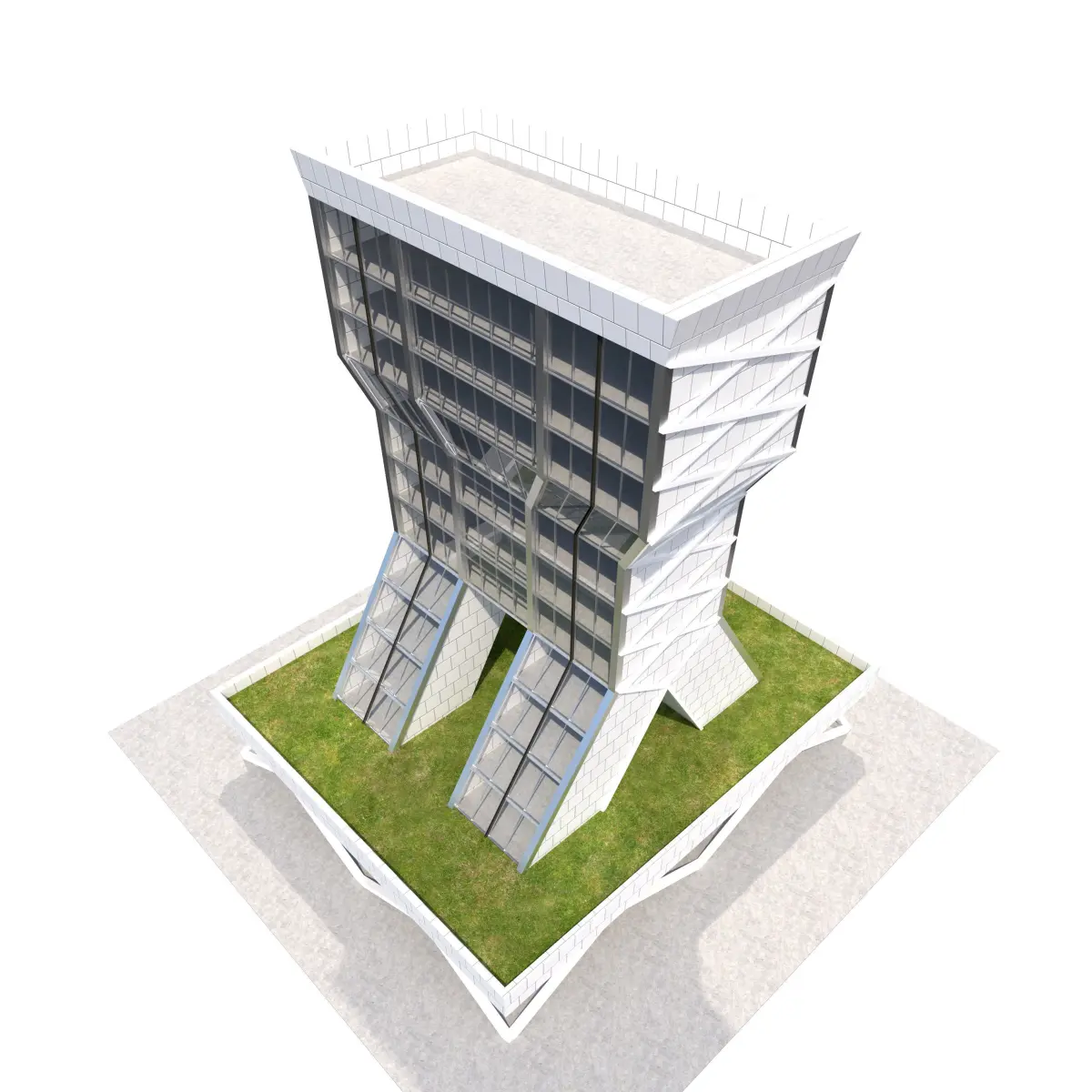 Modeled to Scale and Dimensions: 196'x196' Pad (60mx60m), Building: 125'x147' Base, 158' High Main Tower: 82'x97'Building has 12 Floors