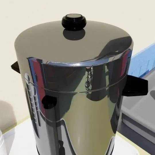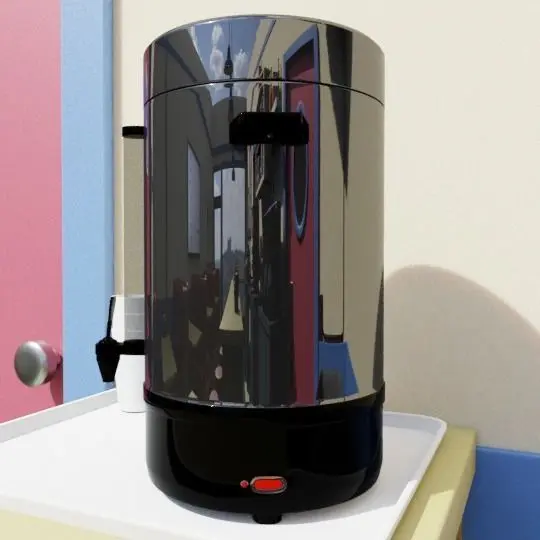 Commercial/Industrial stainless steel coffee percolator.UV unwrapped PBR textures.Rendered using Blender Cylces.