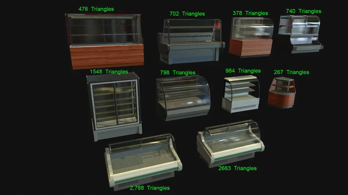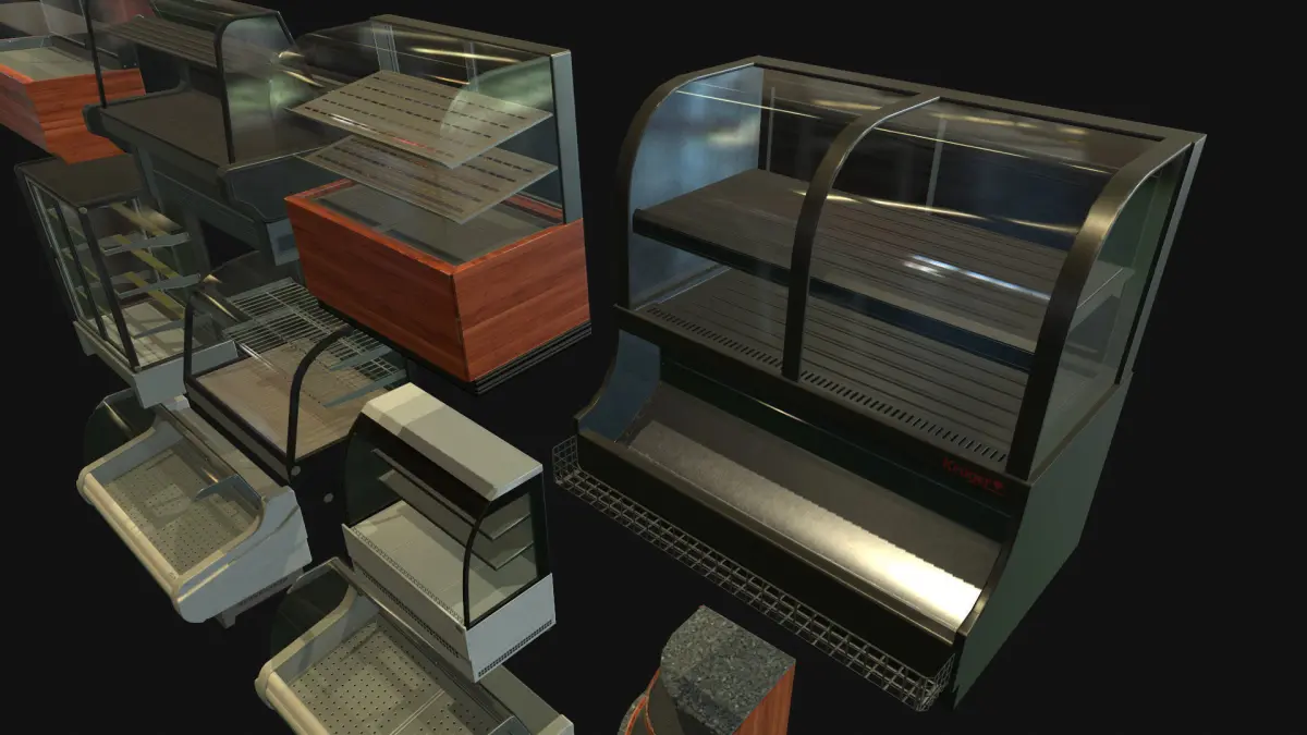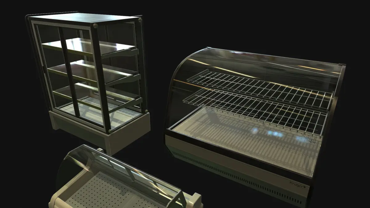 This is a collection of food display counters that can typically be found in coffee shops, restaurants, supermarkets, etc..