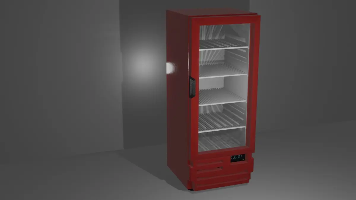 The door is rig and is separate from the freezer. The model formats are blender, fbx and stl.