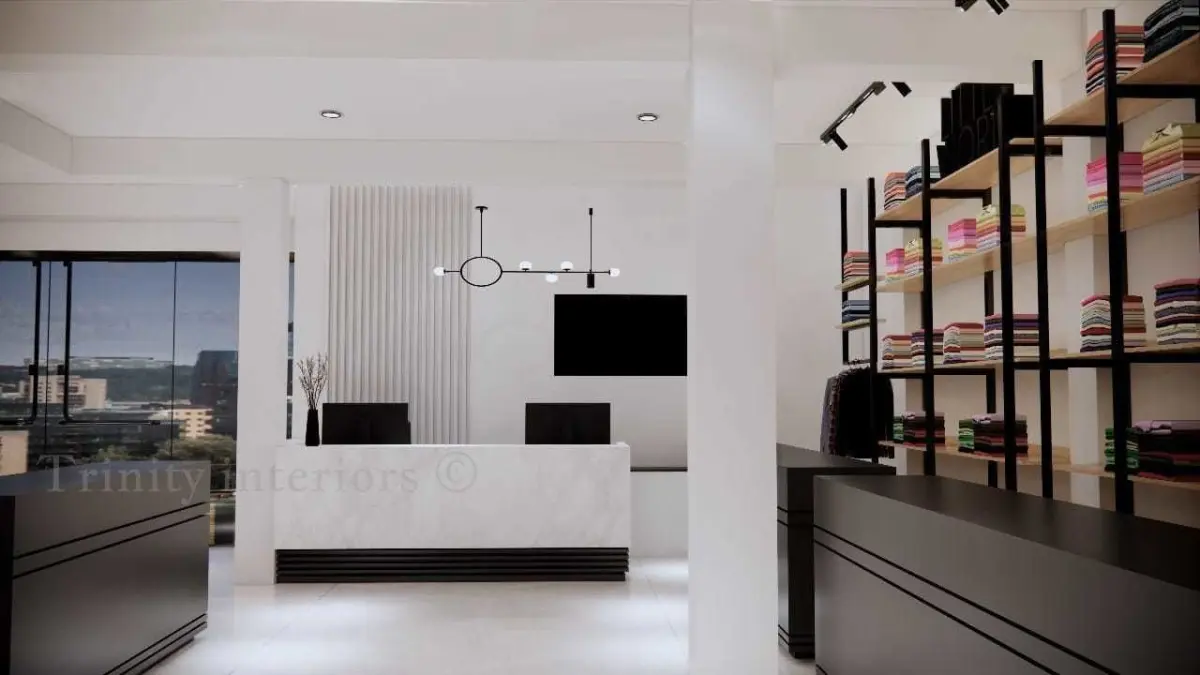 this is unisex garment showroom with industrial touch