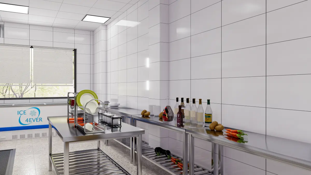 Enhance your design projects with this highly detailed 3D model of a professional commercial kitchen. This model showcases a meticulously crafted layout featuring high-quality textures and elements, including stainless steel countertops, industrial-grade appliances, storage units, and functional workstations. Designed for optimal workflow, the kitchen setup includes cooking ranges, refrigeration units, preparation areas, and dishwashing stations, all arranged to meet industry standards. Fully customizable, you can adjust materials, colors, and equipment to match your specific requirements. Compatible with popular 3D software, this model ensures easy integration into your projects. Ideal for architects, restaurant designers, and 3D artists, this model helps visualize efficient and practical kitchen designs for restaurants, hotels, or culinary schools. Elevate your projects with this realistic and professional commercial kitchen 3D model, perfect for showcasing modern and efficient kitchen layouts.