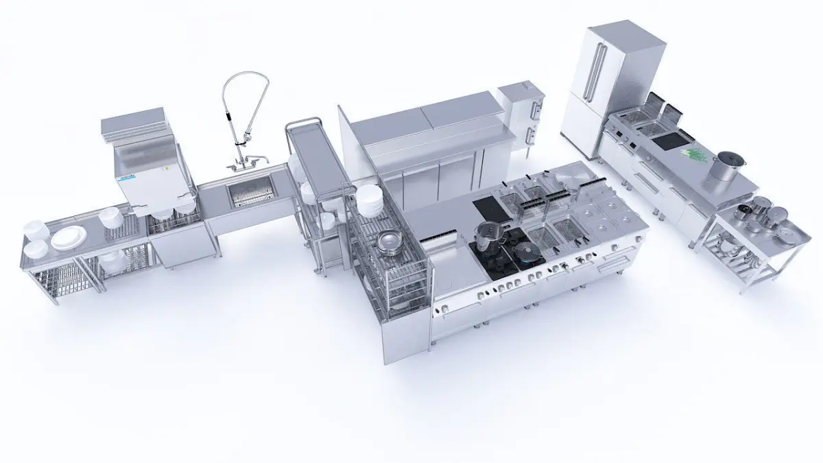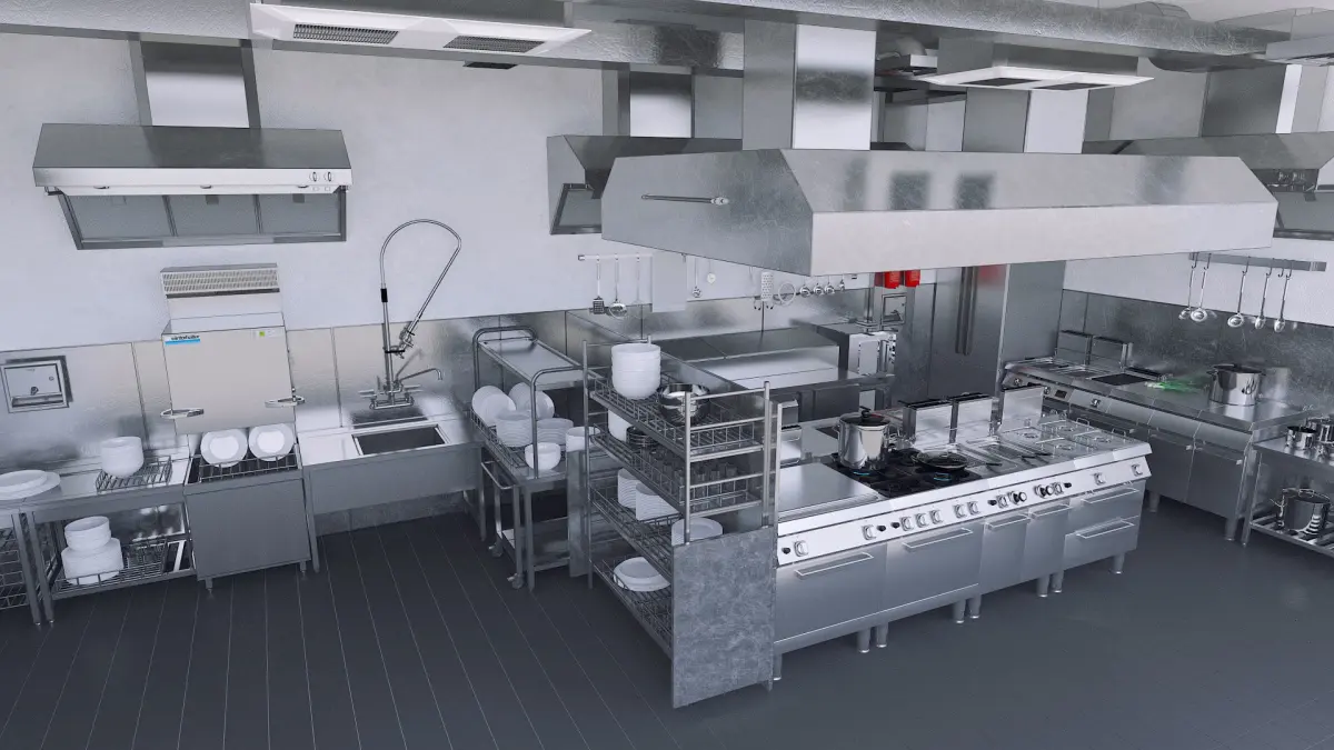 If you are interested, I refer you to my latest version with PBR materials and a few extras (including kitchen pressure fryer by Henny Penny), available here under the name 'Commercial Kitchen v3'