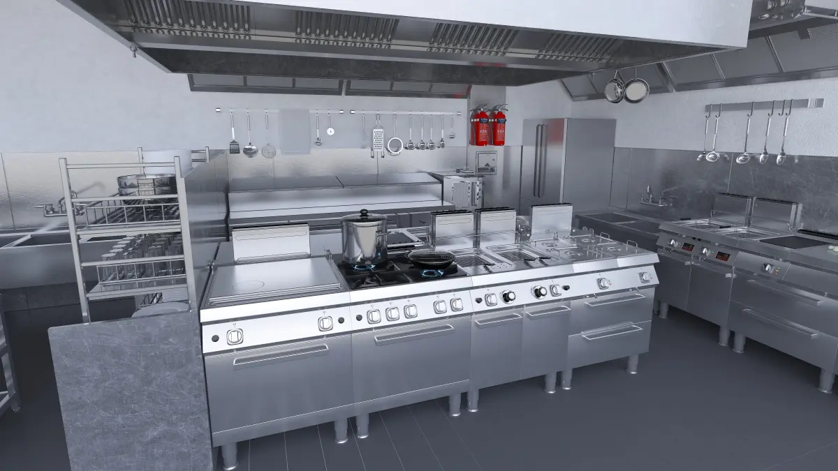 This is the enhanced version of my previous Commercial Kitchen model. This time more detail was put into exhaust hoods and kitchen island equipment. There are several other minor improvements.In case you encounter problems with any of the file formats, let me know.