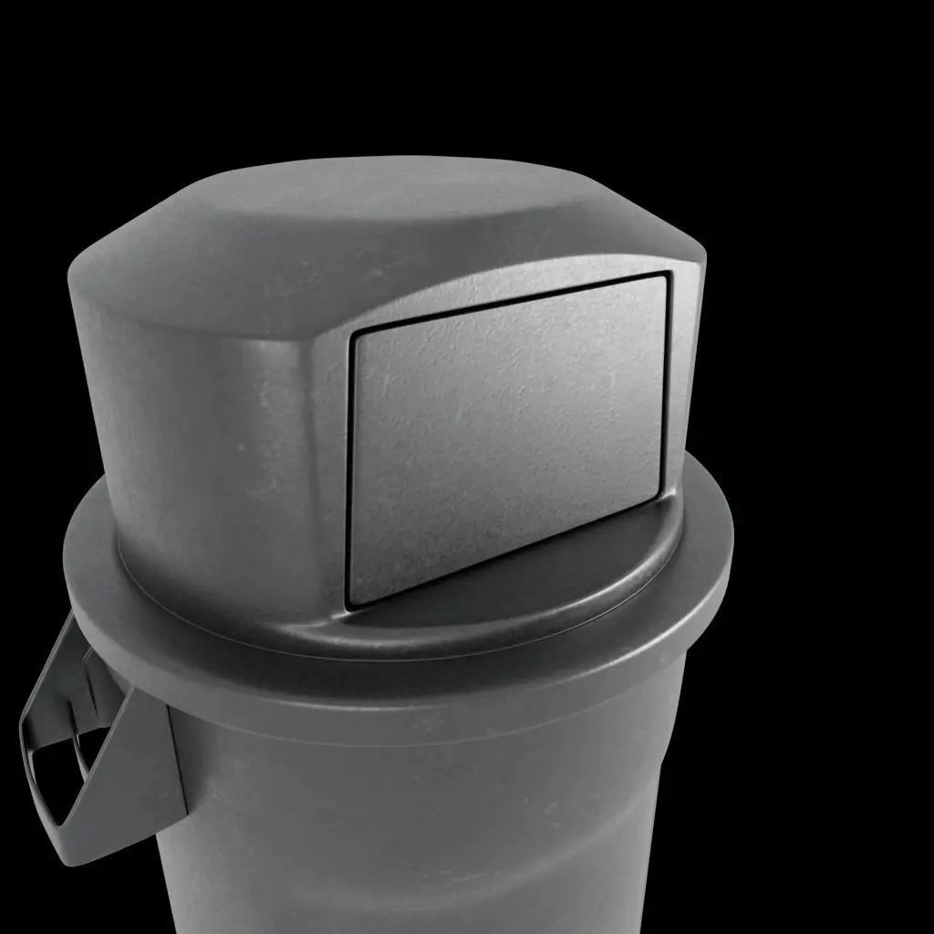DESCRIPTION -This is based on the Rubbermaid BRUTE 32 Gallon Gray Round Trash Can and Dome Top Lid. Perfect for architectural renders.