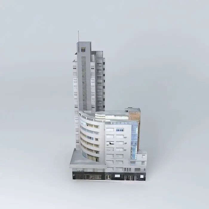 This 3D model was originally created with Sketchup 13 and then converted to all other 3D formats. Native format is .skp 3dsmax scene is 3ds Max 2016 version, rendered with Vray 3.00 18-storey building that originally belonged to the insurance company "La Comercial", designed by Delorenzi, Otaola and Rocca architects opened in 1940. It was the ultimate expression of rationalism in Rosario, become a symbol of the city until the construction of monument to the flag. NOTE: I had to add a base of 143cm and 38cm sink the model to save a drop of about 334cm presented by GE between the vertices of the terrain. More information in http://www.viarosario.com/arquitectura/notas/edificio-compania-de-seguros-la-comercial-de-rosario.html
