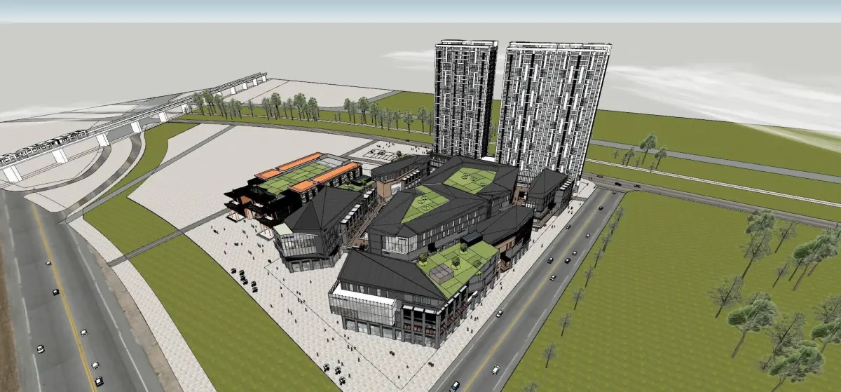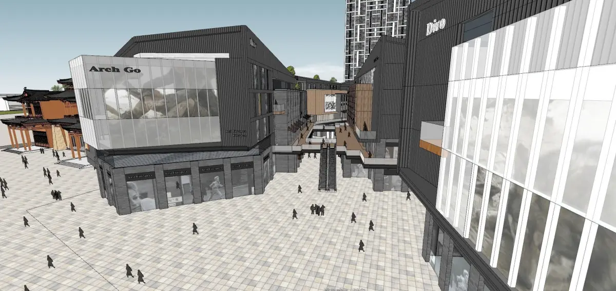 here is a commericial zone in city, there are lots of shopping area, also here some Chinese style architecet in this model.
