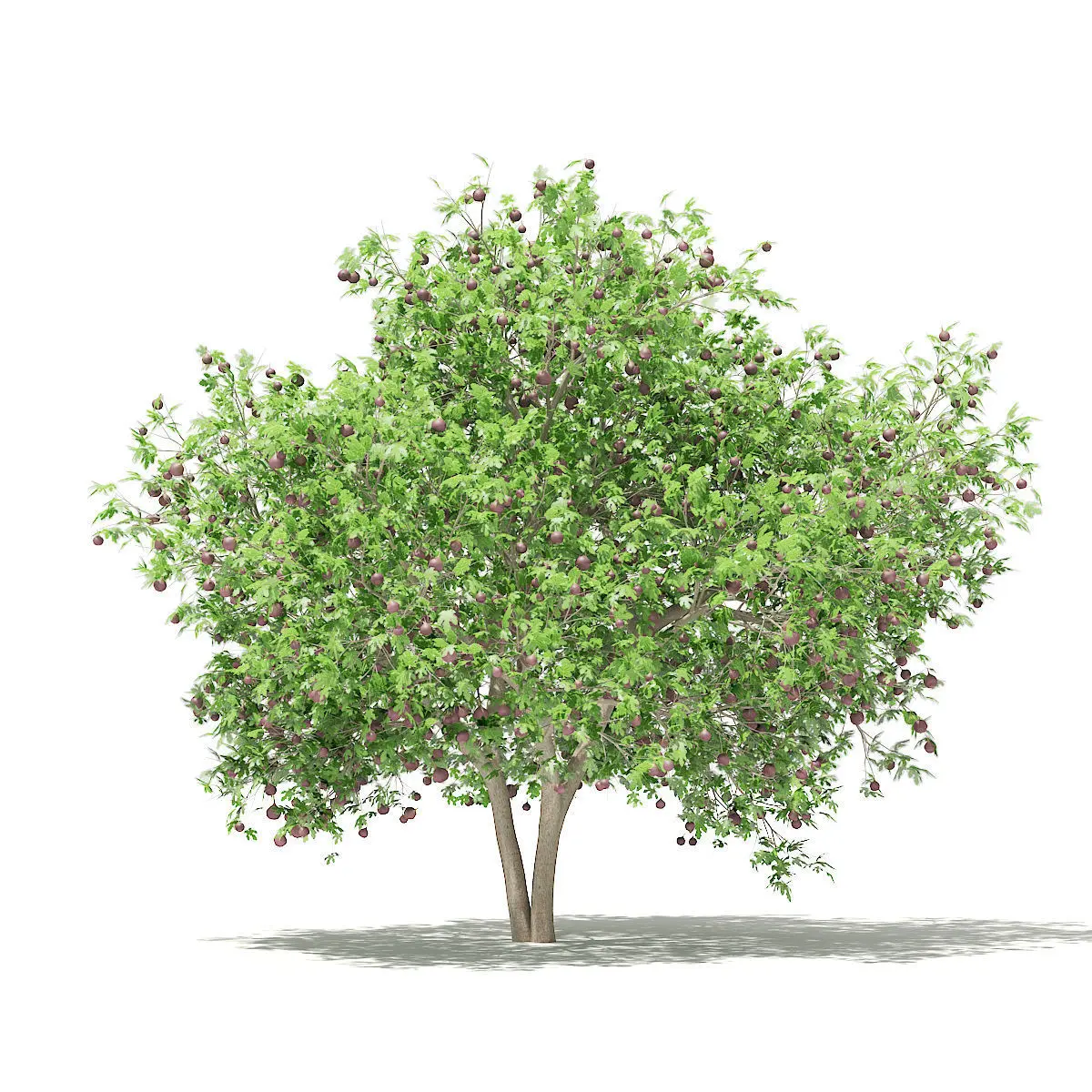 Common fig tree with fruits 3d model (Ficus carica). Height: 3.4m. Compatible with 3ds max 2010 (V-Ray, Mental Ray, Corona) or higher, Cinema 4D R15 (V-Ray, Advanced Renderer), FBX, OBJ, VRMESH and Unreal Engine.