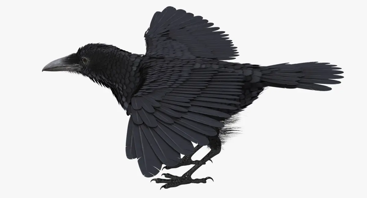 Common Raven 3d model fully rigged with bones and skin system in Cinema 4D R14.