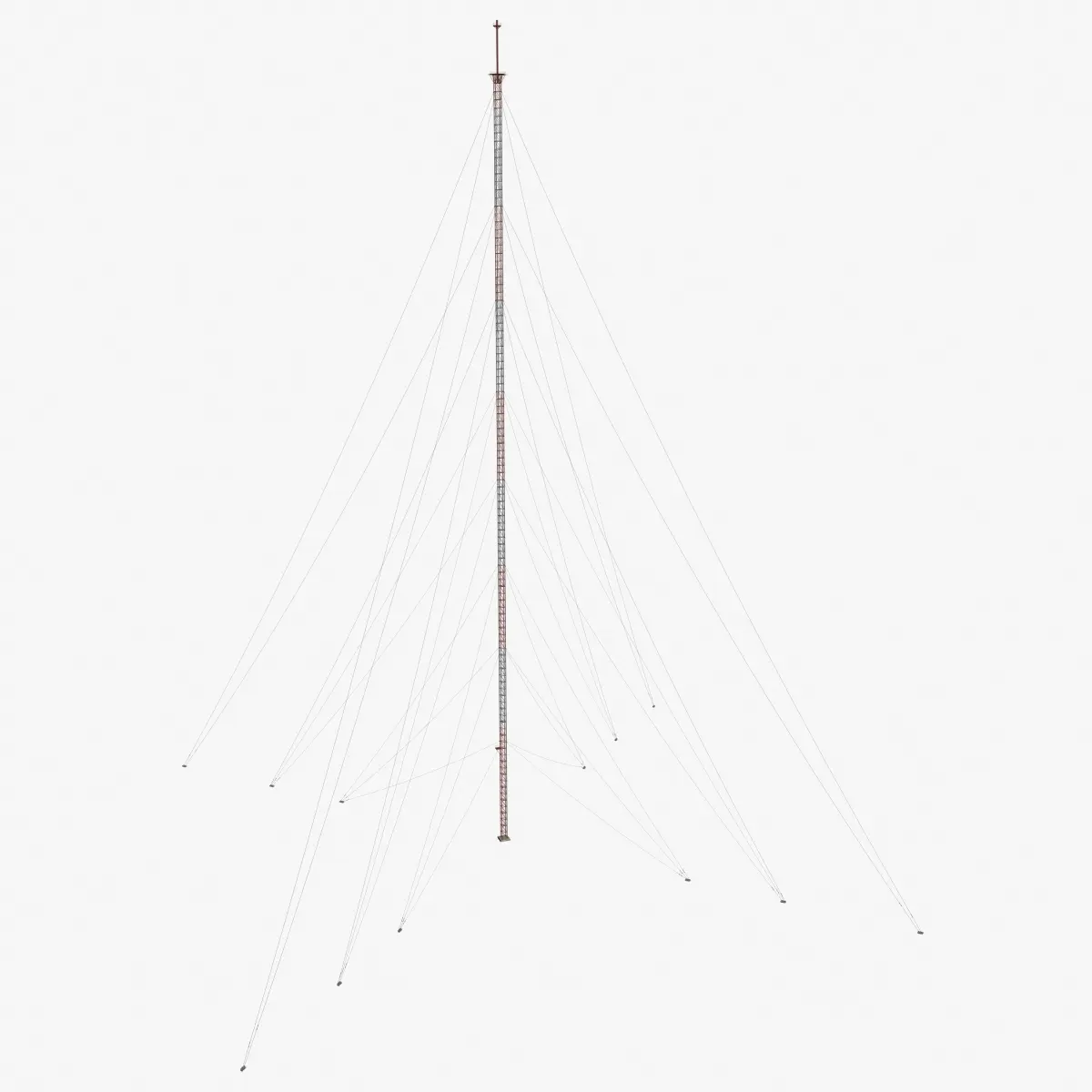 ***** Building information *****• Mast height: 350m• Guy-wires max distance: 200m• 8 guy-wires on each corner (total 32 guy-wires)• 9 colored blocks + upper tube• 1 special stand