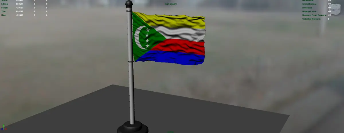 Comoros flag high poly 3d model