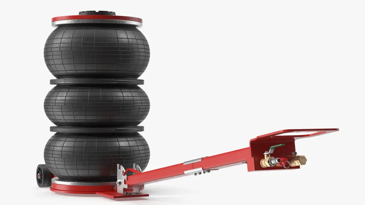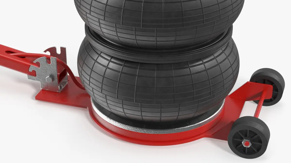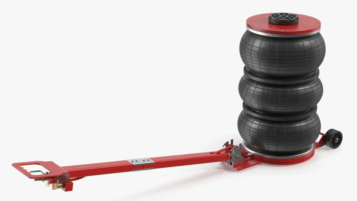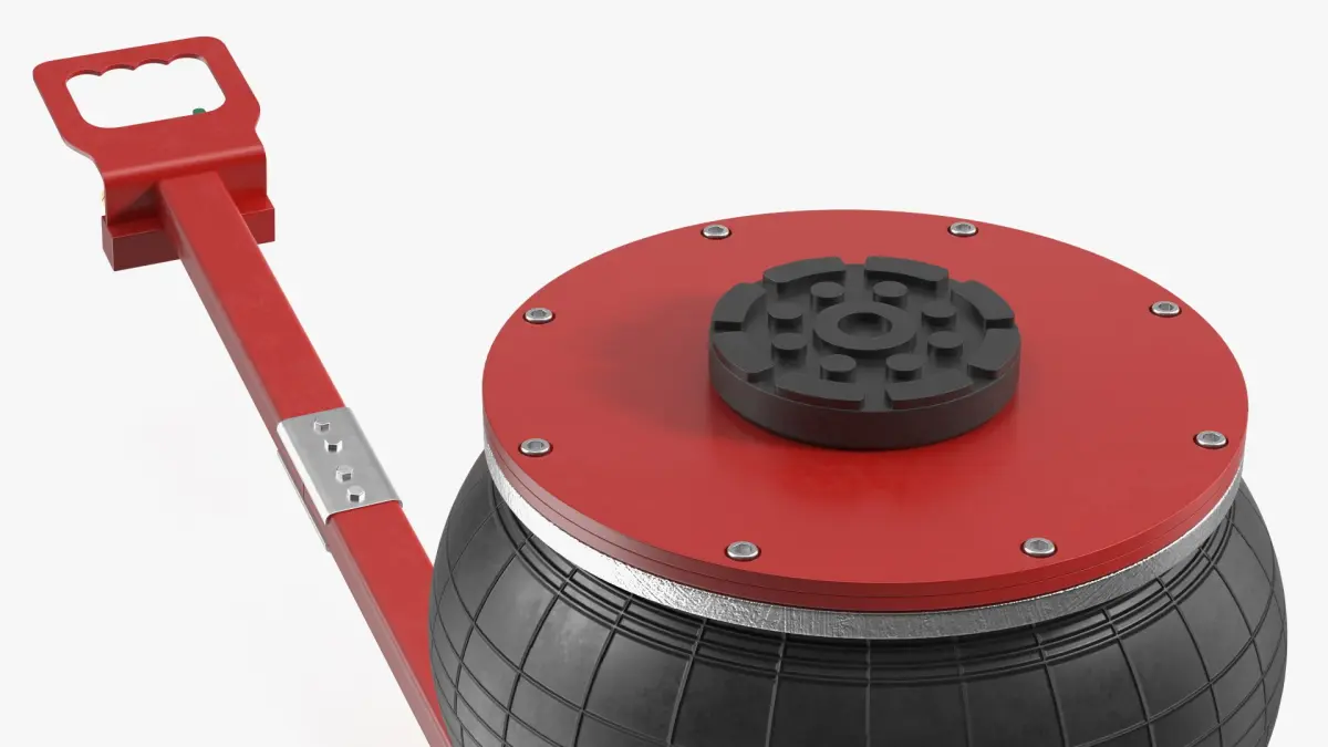 Compact Air Spring Vehicle Jack Red is a three-dimensional model of lifting device that uses a compressed air spring mechanism to raise vehicles for maintenance or repair.