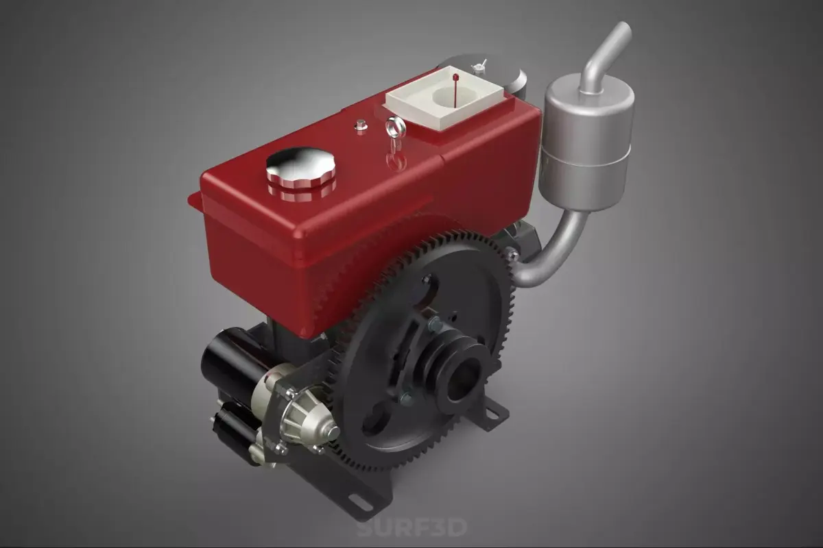 KEYWORDS: Starter motor, solenoid, flywheel, ring gear, diesel engine, compact engine, electro-mechanical, high compression, cranking torque, DC motor, series-wound, pinion gear, Bendix drive, pre-engaged drive, battery, ignition system, rotational inertia, crankshaft, automatic starting, compression ignition, electrical system, high amperage, gear reduction, starter drive, mechanical engagement, rotational speed, vehicular component, cold starting, torque multiplication, compression cycle.
